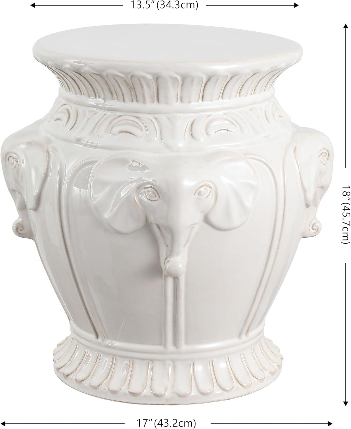 JONATHAN Y TBL1007C White Elephant 14.25″ Ceramic Indoor/Outdoor Garden Stool Coastal, Contemporary, Transitional, Patio, Garden Room, Bathroom, Living Room, Orange(Antique White)