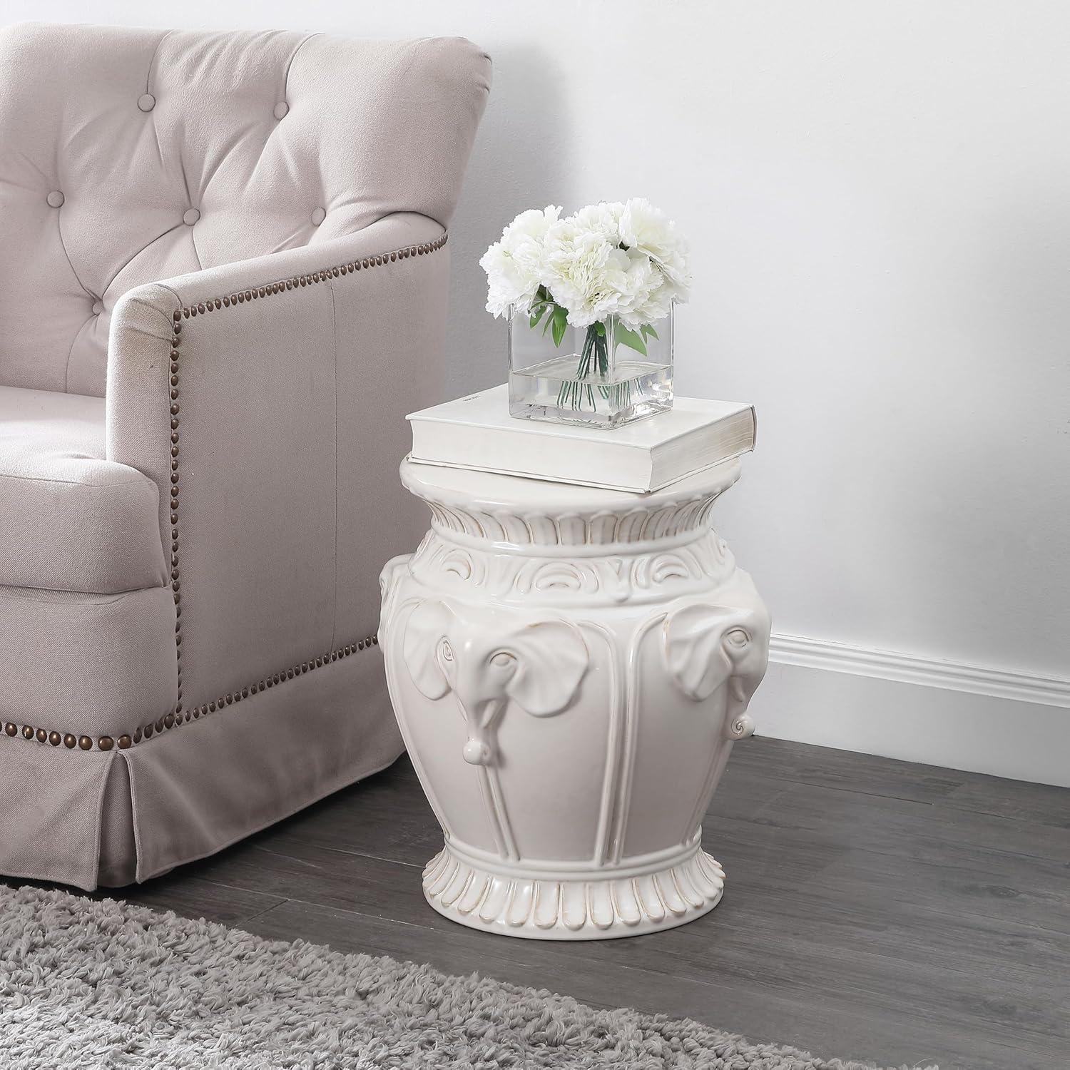 JONATHAN Y TBL1026A Orla 18.5″ Modern Bohemian Elephant Ceramic Indoor/Outdoor Garden Stool Modern, Bohemian, Mid-Century, Classic, Traditional, Cottage, Patio, Garden, Bathroom, Living Room, White(White)