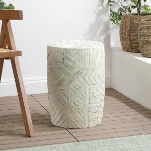 JONATHAN Y TBL1030A Rafi 17.75″ Transitional Bohemian Geometric Drum Garden Stool, Cream for Patio, Porch, Backyard(Cream)