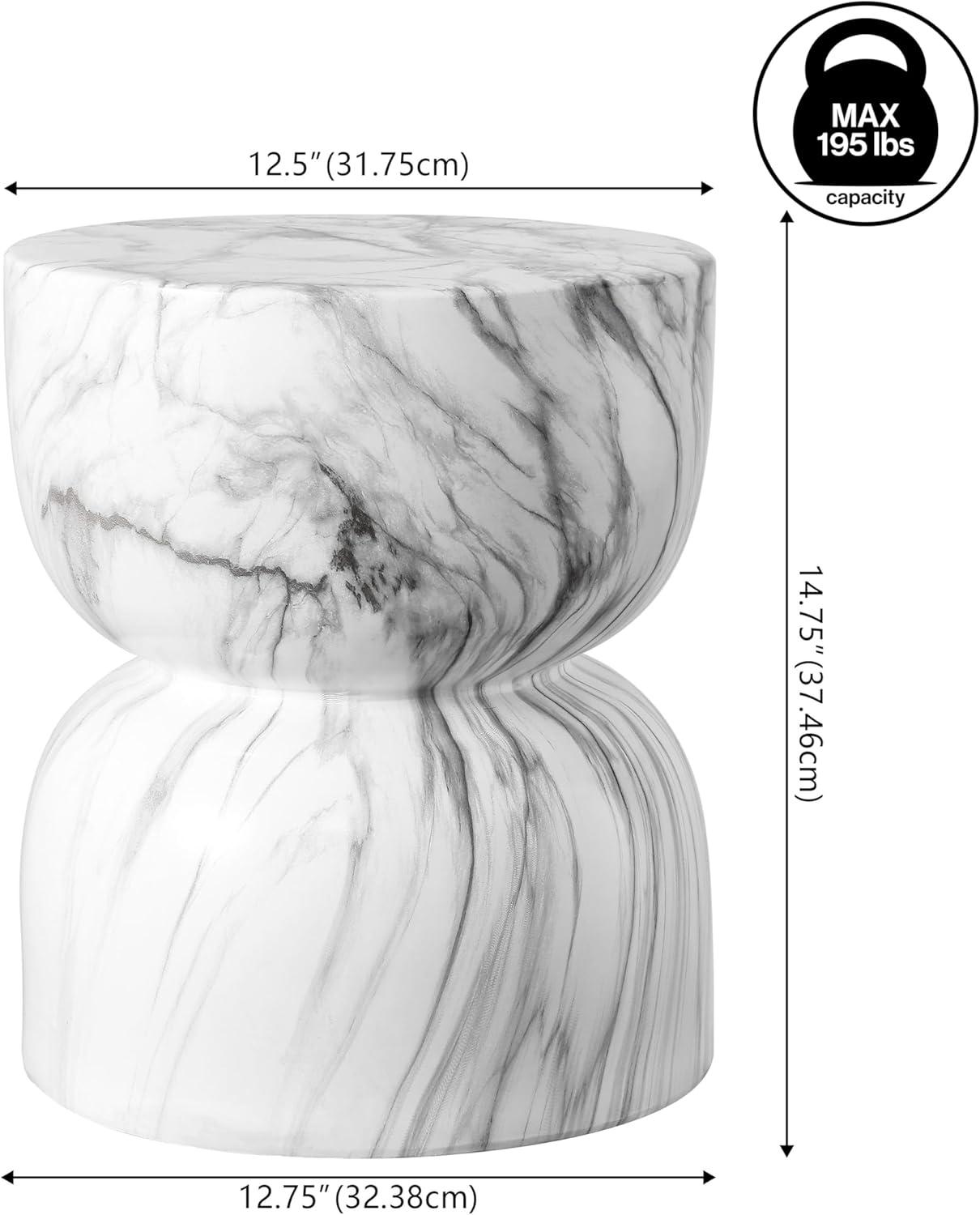 JONATHAN Y TBL1033A Zakhai 14.75″ Contemporary Modern Marble Glaze Drum Indoor/Outdoor Garden Stool, White/Gray