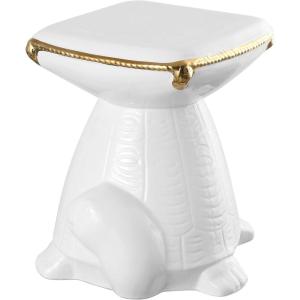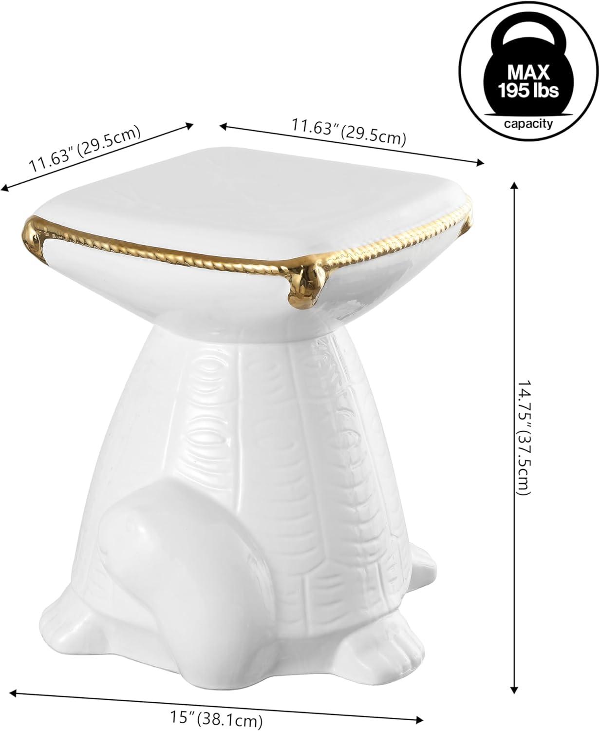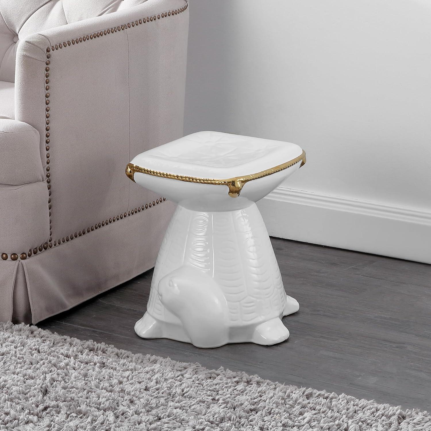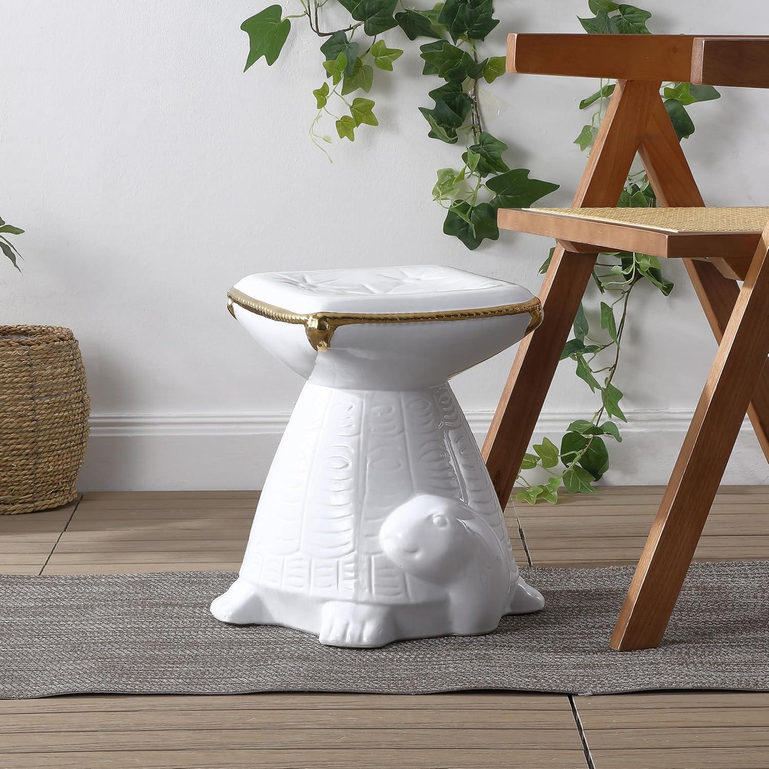 JONATHAN Y TBL1034A Caspian 14.75″ Modern Bohemian Ceramic Turtle Indoor/Outdoor Garden Stool, Coastal, Cottage, French Country, Traditional, Spill-Proof, Living Room, Garden Room, Patio, White/Gold