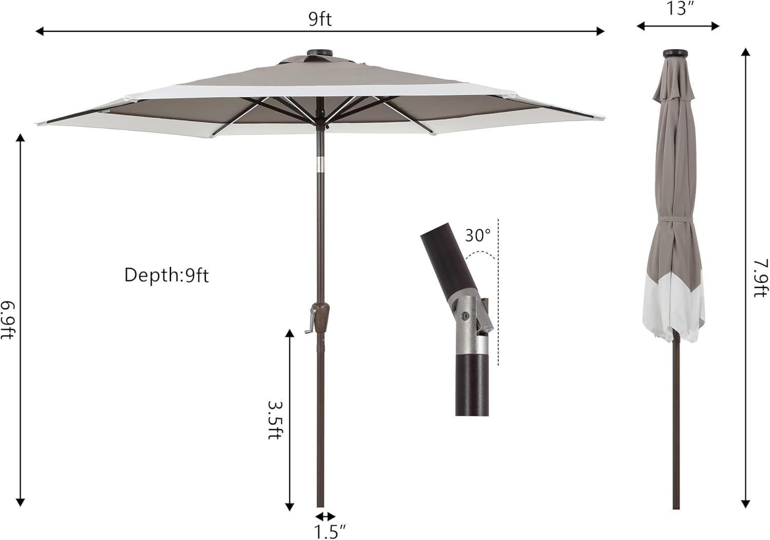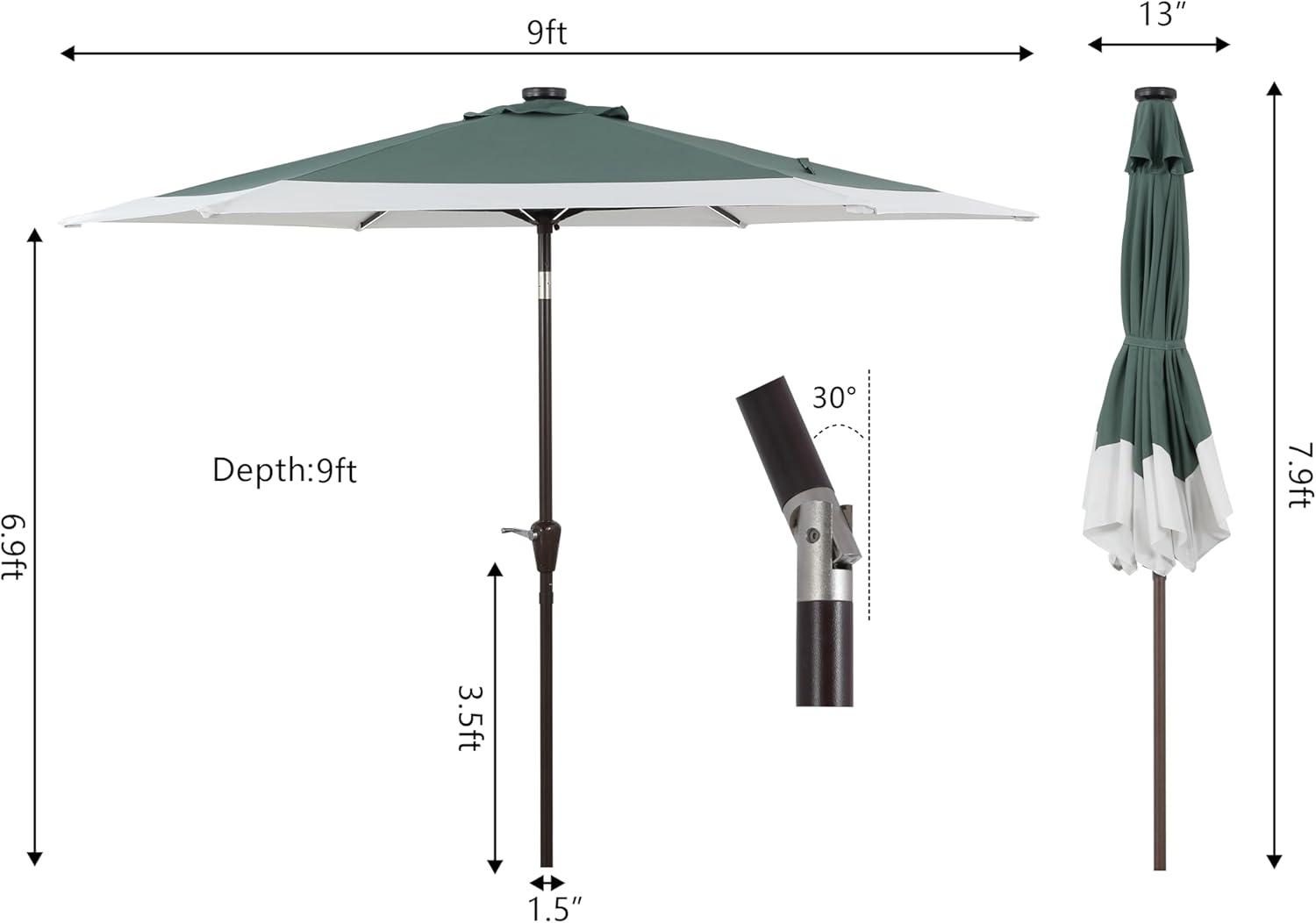 - Get more for your money with our exclusive bundle deals on JONATHAN Y UMB1100E Spencer 9 ft. Classic Coastal 2-Tone Solar LED Market Patio Umbrella with 12 LED Strip Lights, Auto-Tilt, Crank Protection in Green/White(Navy/White) and accessories.
