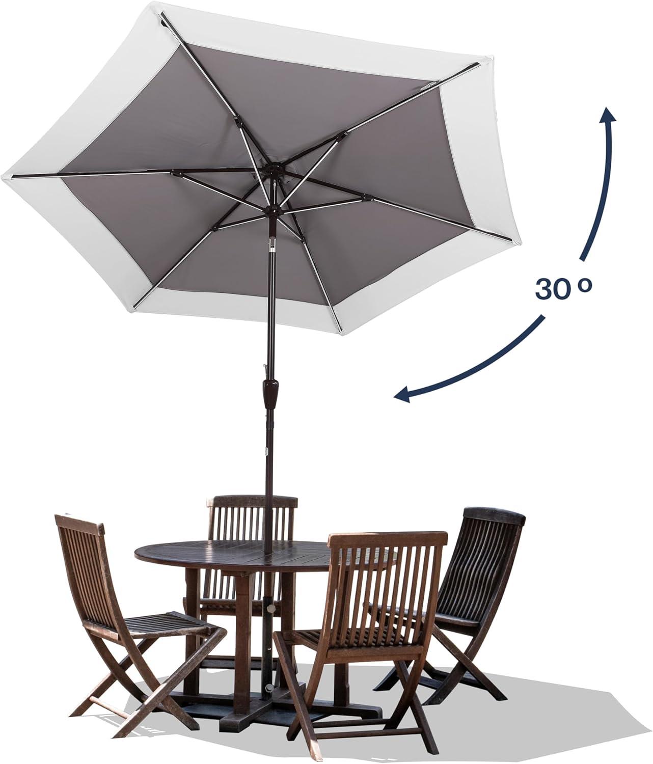 JONATHAN Y UMB1100E Spencer 9 ft. Classic Coastal 2-Tone Solar LED Market Patio Umbrella with 12 LED Strip Lights, Auto-Tilt, Crank Protection in Green/White(Gray/White)