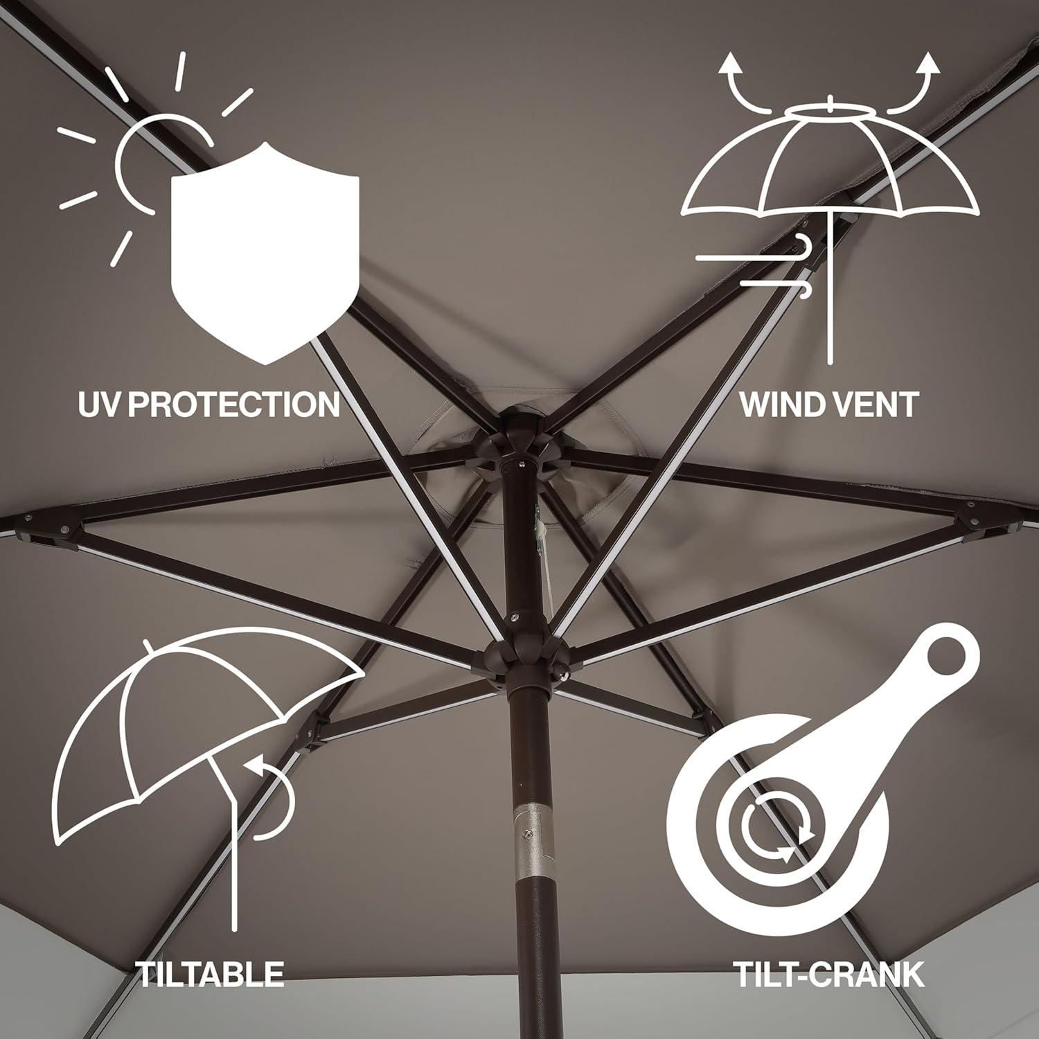 - Don't wait, get up to 50% off on JONATHAN Y UMB1001 Collins 9 ft. Classic Cottage Tassel Market Patio Umbrella with Auto-Tilt, Crank, Wind Vent and UV Protection(Light Gray/White/Cream) during our end-of-season sale event.