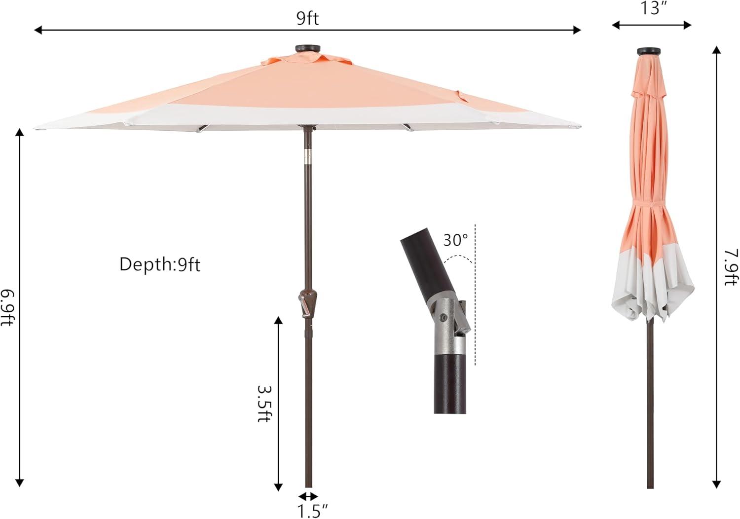- Get up to 70% off on JONATHAN Y UMB1100E Spencer 9 ft. Classic Coastal 2-Tone Solar LED Market Patio Umbrella with 12 LED Strip Lights, Auto-Tilt, Crank Protection in Green/White(Coral Pink/White) styles during our end-of-season clearance event.