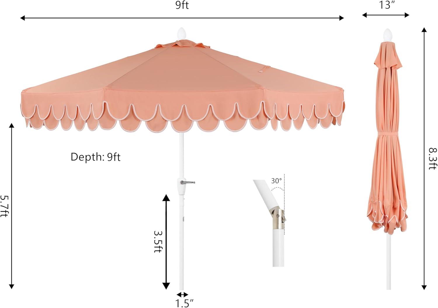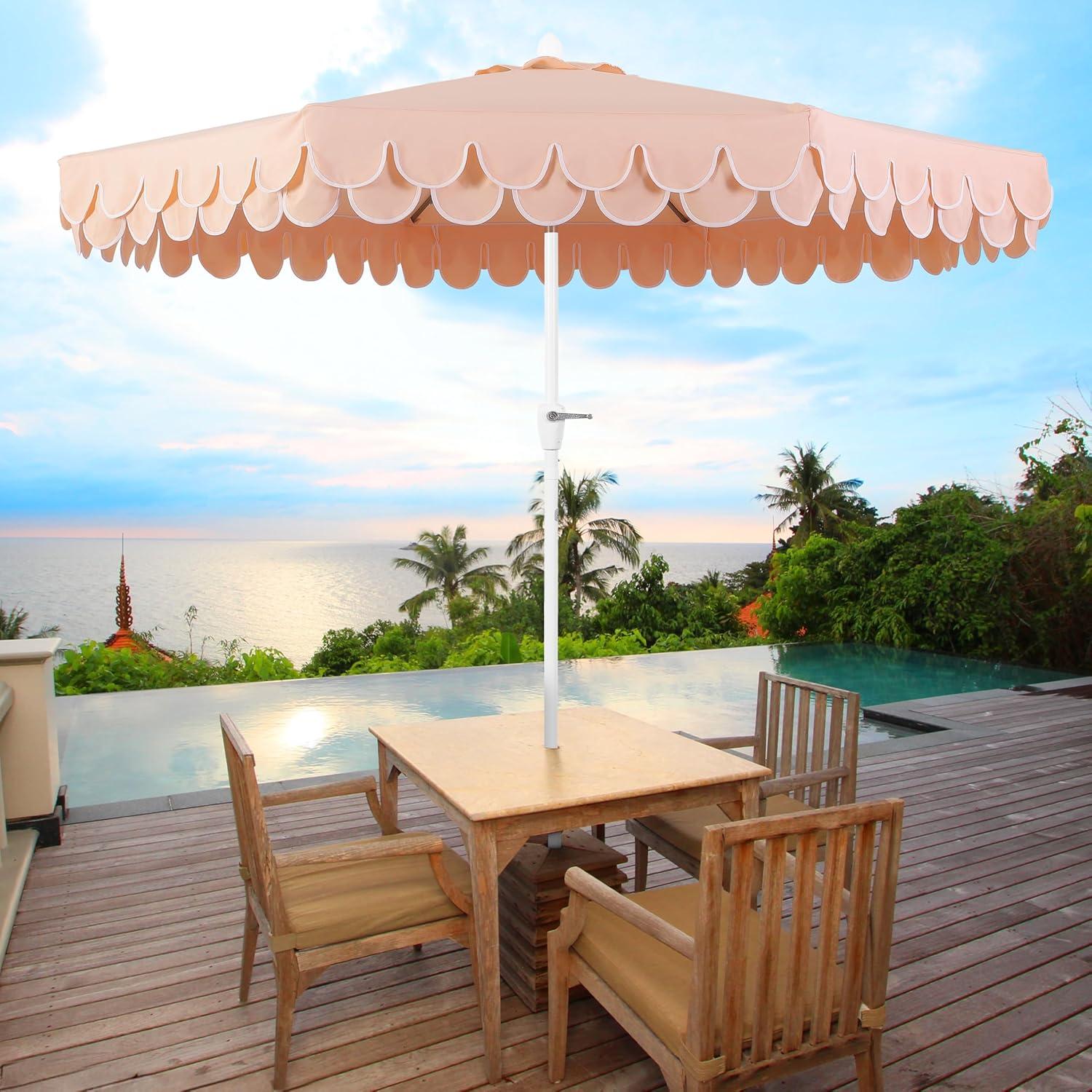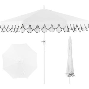 - Get the JONATHAN Y UMB1002F Tracy 9 ft. Classic MidCentury Scalloped Fringe Market Patio Umbrella with Auto-Tilt Crank, Wind Vent and UV Protection in Coral Red/White, White Pole(Cream) you want at a price you can afford with our markdown sale.