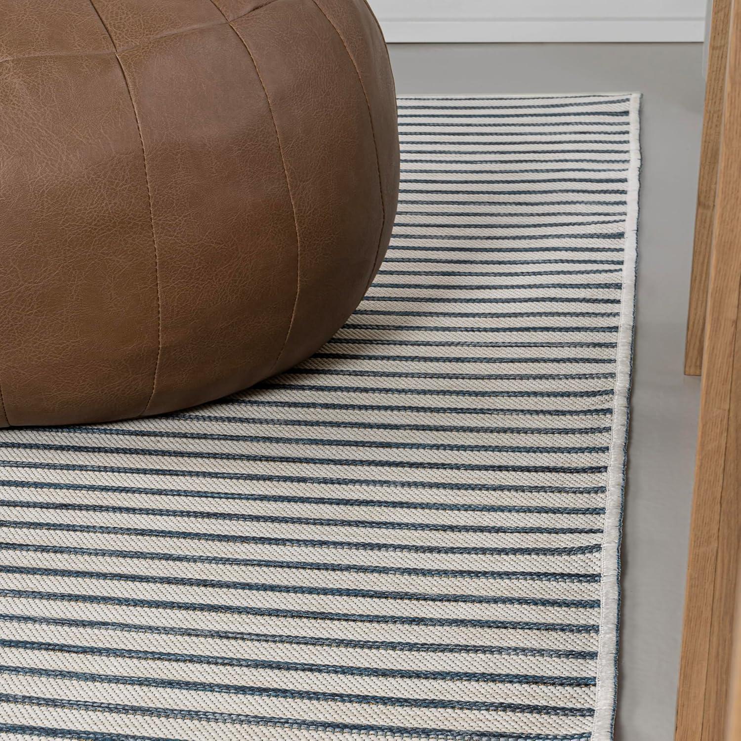JONATHAN Y Aarhus High-Low Striped Ivory/Cream Indoor/Outdoor Area Rug 8×10, Minimalist Geometric, Classic, Farmhouse, Cottage, Minimalist, Bedroom, Kitchen, Living Room, Non Shedding (SCN102B-8)(Blue/Ivory)