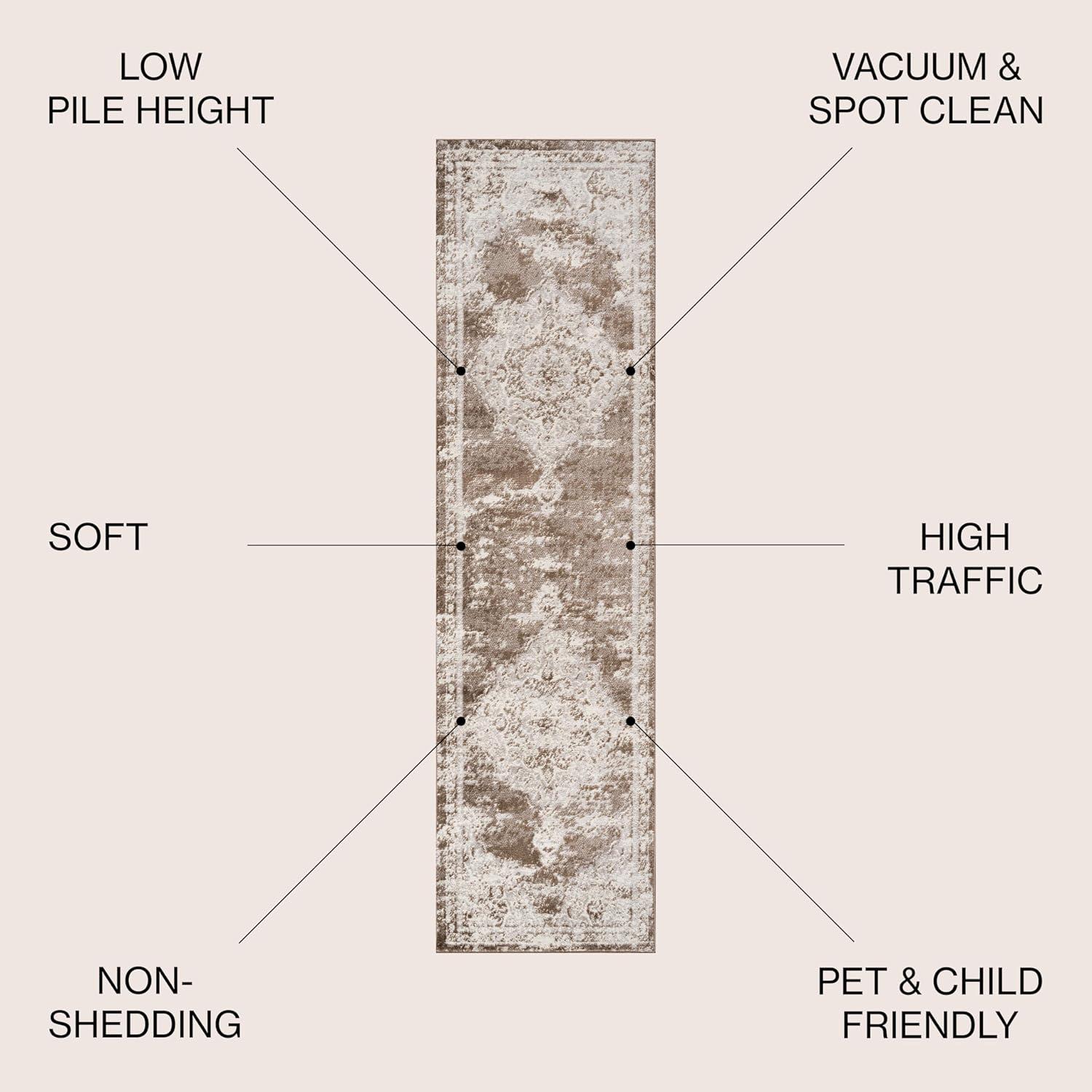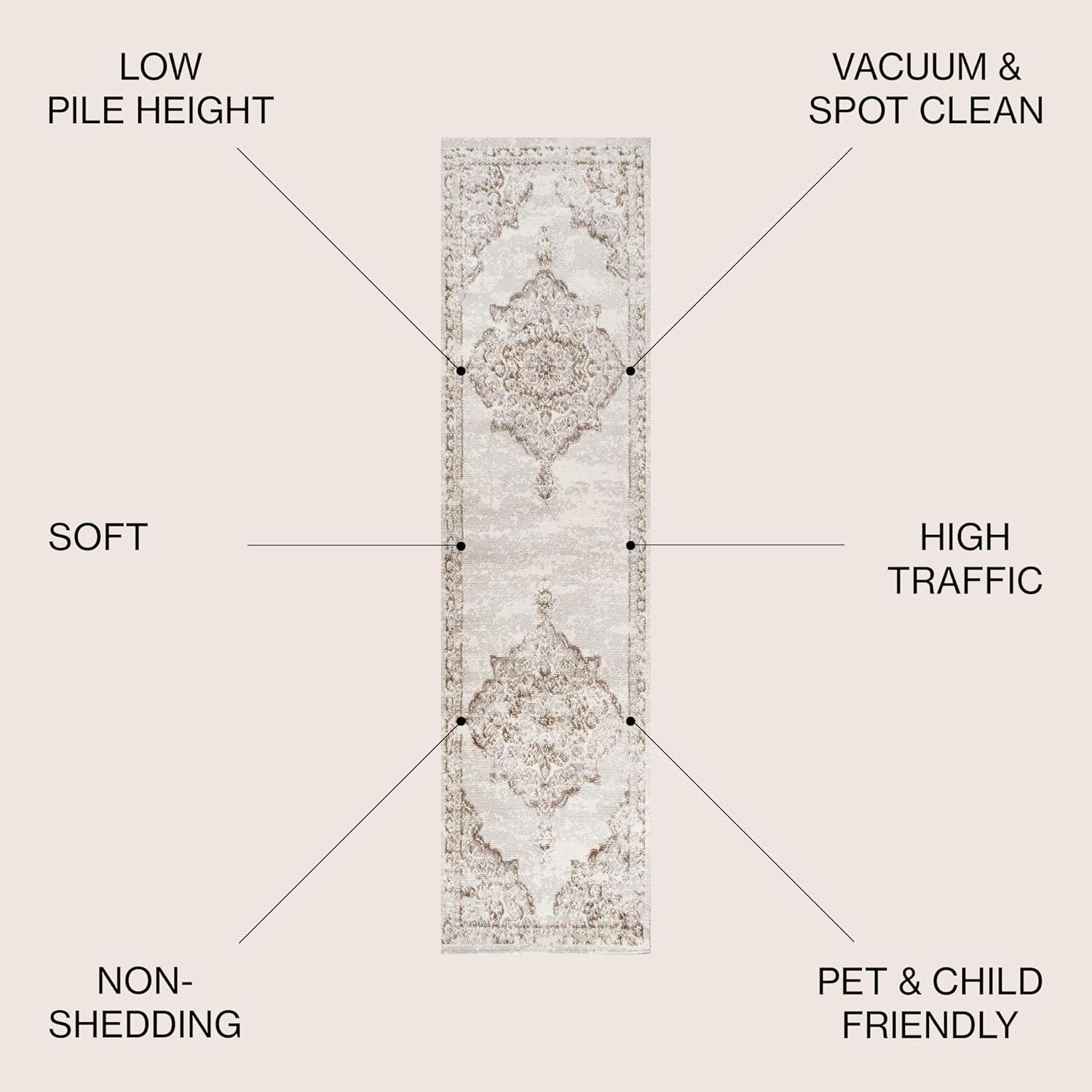 JONATHAN Y Alhambra Ornate Medallion Modern Brown/Cream Indoor Area Rug, 8×10, Vintage, Bohemian, Easy-Cleaning for Living Room, Bedroom, Kitchen, Pet Friendly, Non-Shedding (MDP400B-8)(Ivory)