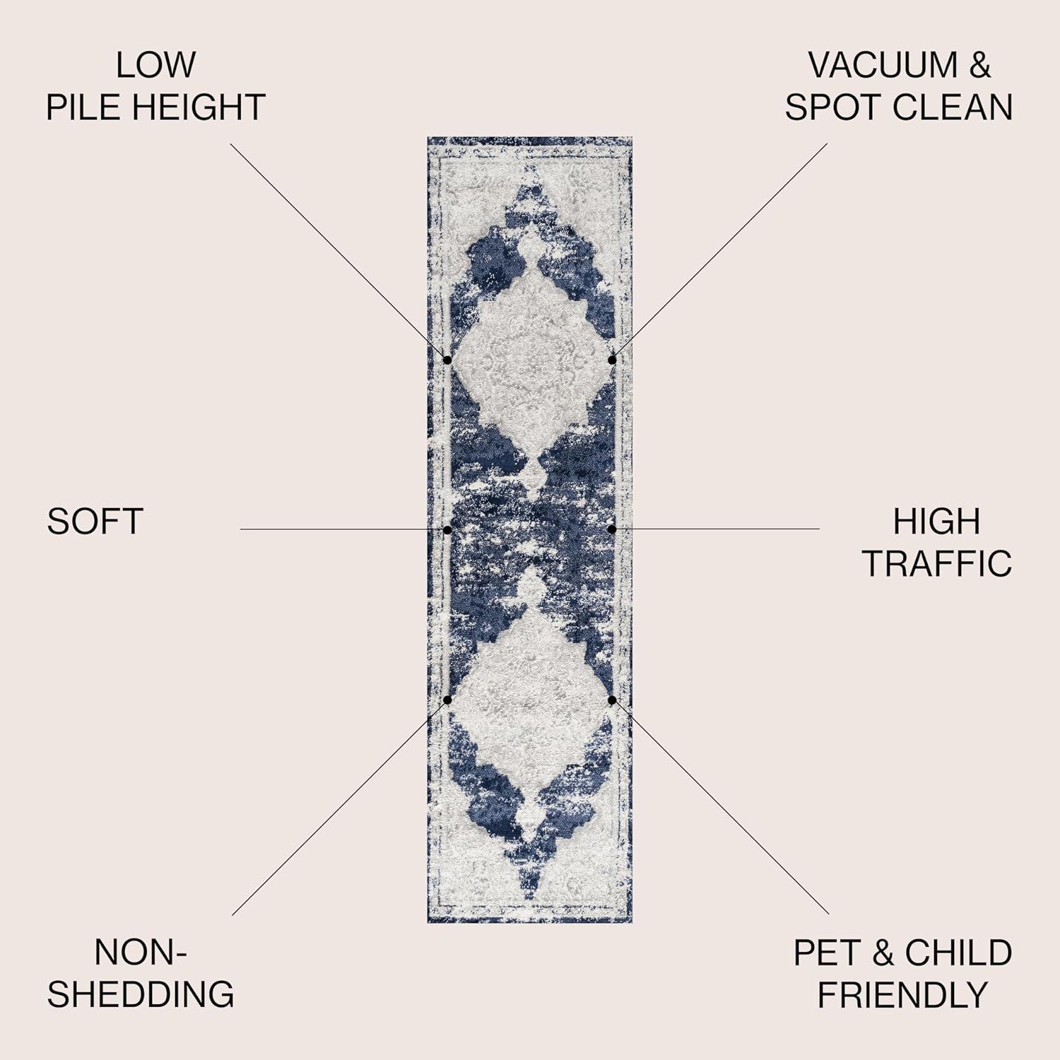 JONATHAN Y Alhambra Ornate Medallion Modern Brown/Cream Indoor Area Rug, 8×10, Vintage, Bohemian, Easy-Cleaning for Living Room, Bedroom, Kitchen, Pet Friendly, Non-Shedding (MDP400B-8)(Navy/Ivory)