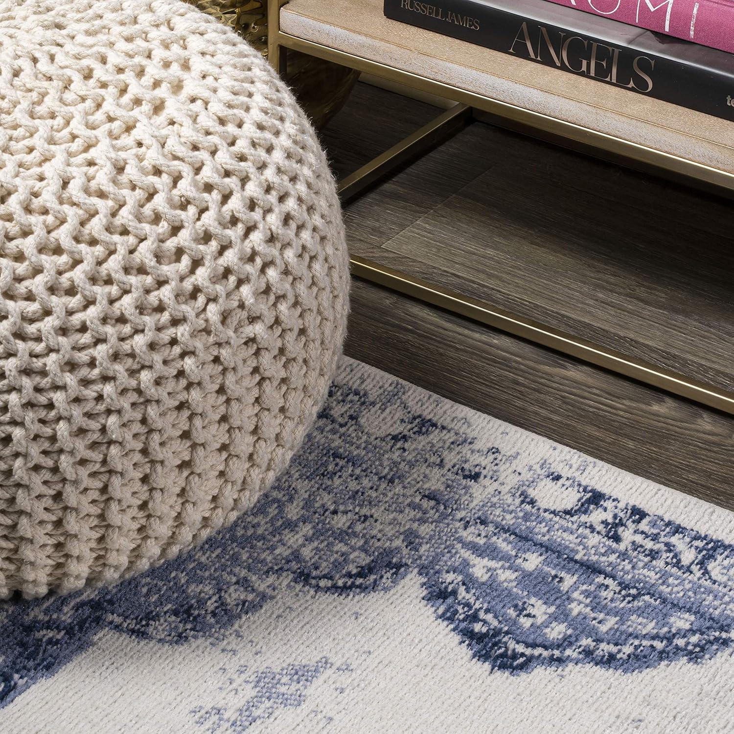 JONATHAN Y Alhambra Ornate Medallion Modern Brown/Cream Indoor Area Rug, 8×10, Vintage, Bohemian, Easy-Cleaning for Living Room, Bedroom, Kitchen, Pet Friendly, Non-Shedding (MDP400B-8)(Ivory/Navy)
