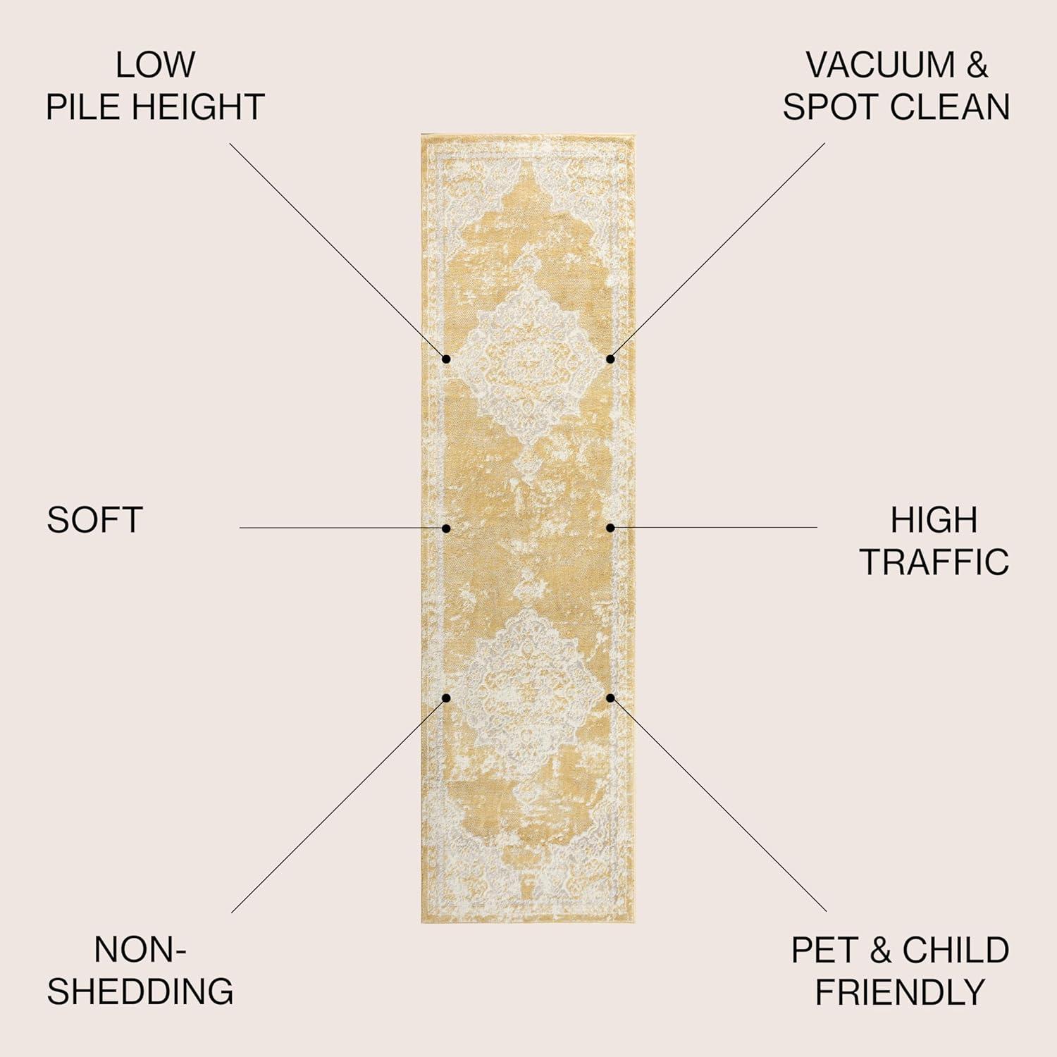 JONATHAN Y Alhambra Ornate Medallion Modern Brown/Cream Indoor Area Rug, 8×10, Vintage, Bohemian, Easy-Cleaning for Living Room, Bedroom, Kitchen, Pet Friendly, Non-Shedding (MDP400B-8)(Yellow/Cream)