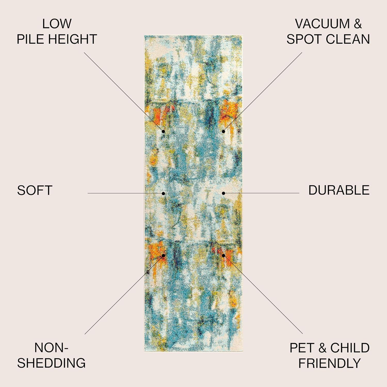 JONATHAN Y Modern Abstract Waterfall Blue/Cream Indoor Area Rug, 8×10, Contemporary POP, Transitional, Easy-Cleaning for Living Room, Bedroom, Kitchen, Pet Friendly, Non-Shedding (CTP100A-8)(2’3″ x 8′ (Runner))