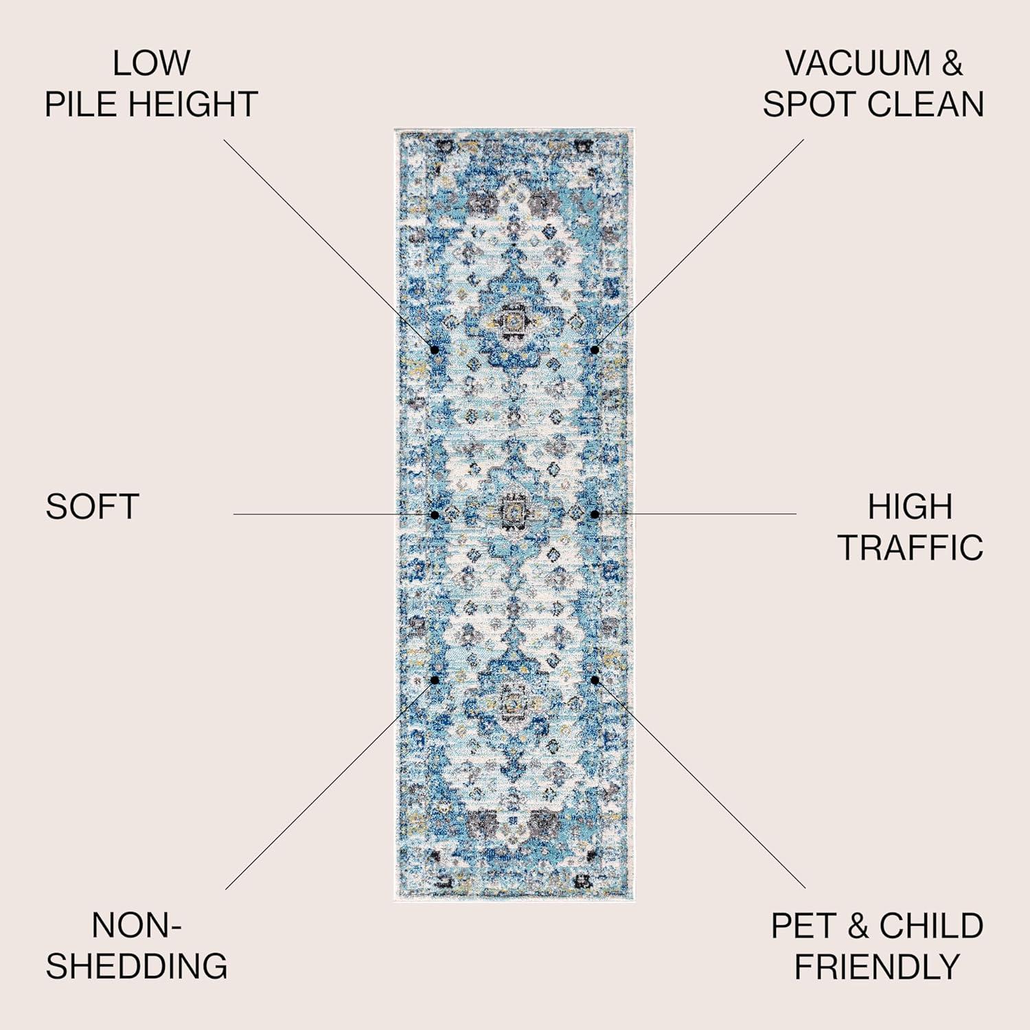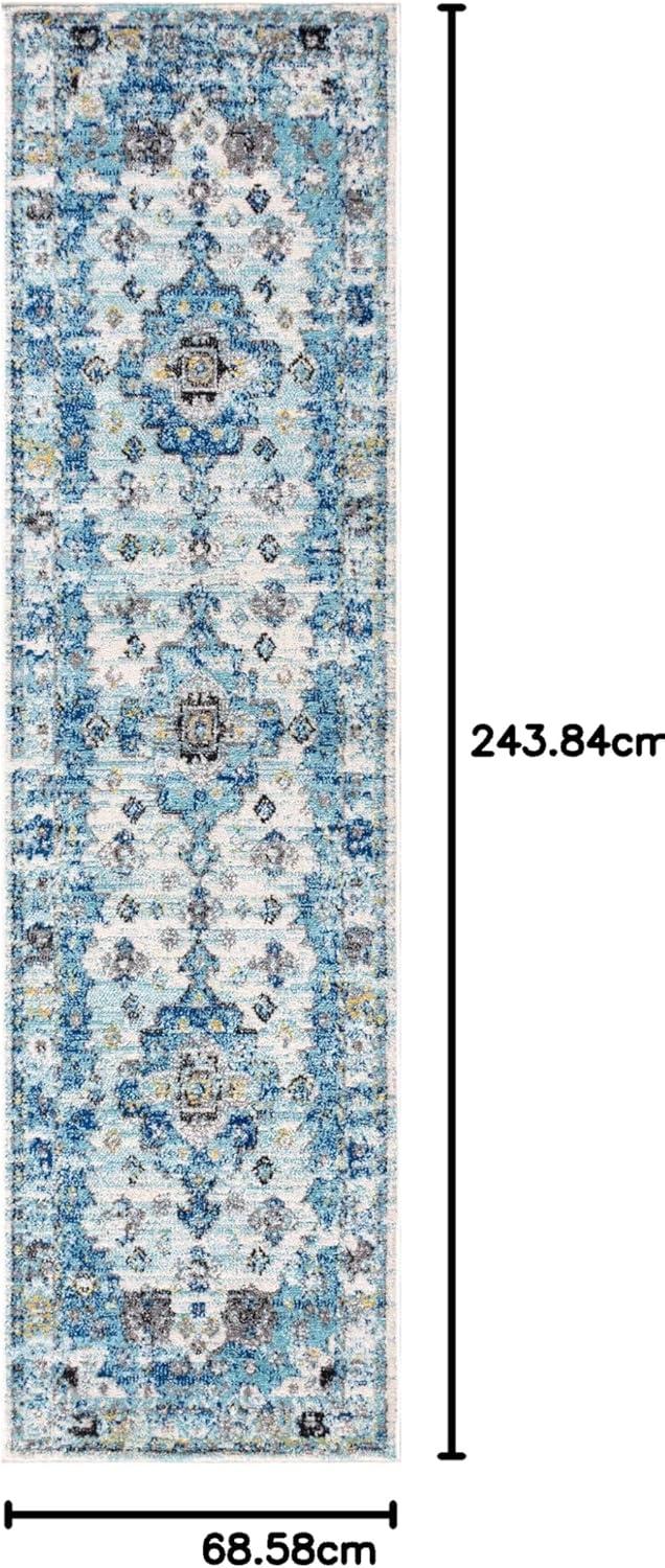 JONATHAN Y Modern Boho Vintage Medallion Cream/Blue Indoor Area Rug, 8×10, Bohemian, Traditional, Easy-Cleaning for Living Room, Bedroom, Kitchen, Pet Friendly, Non-Shedding (MDP202A-8)(2’3″ x 8′ (Runner))