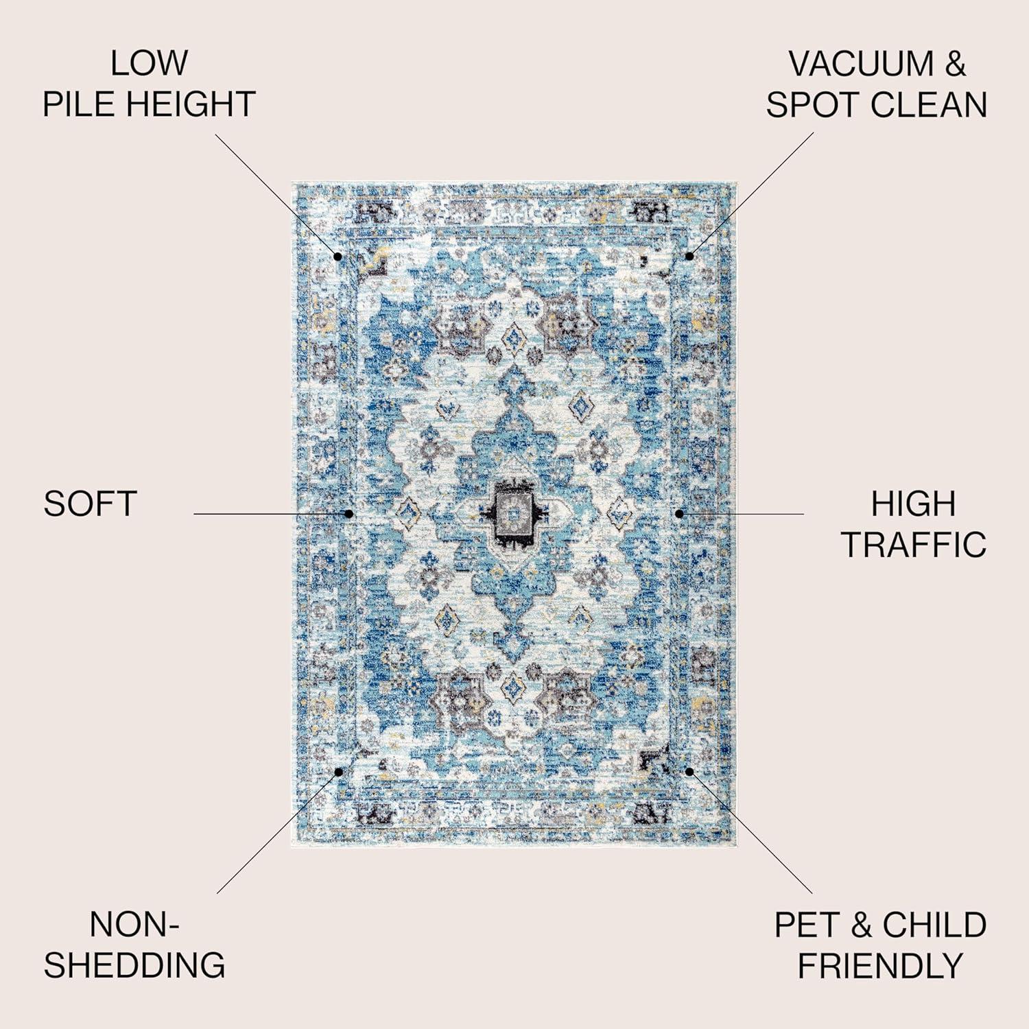 JONATHAN Y Modern Boho Vintage Medallion Cream/Blue Indoor Area Rug, 8×10, Bohemian, Traditional, Easy-Cleaning for Living Room, Bedroom, Kitchen, Pet Friendly, Non-Shedding (MDP202A-8)(3′ x 5′ (Rectangular))