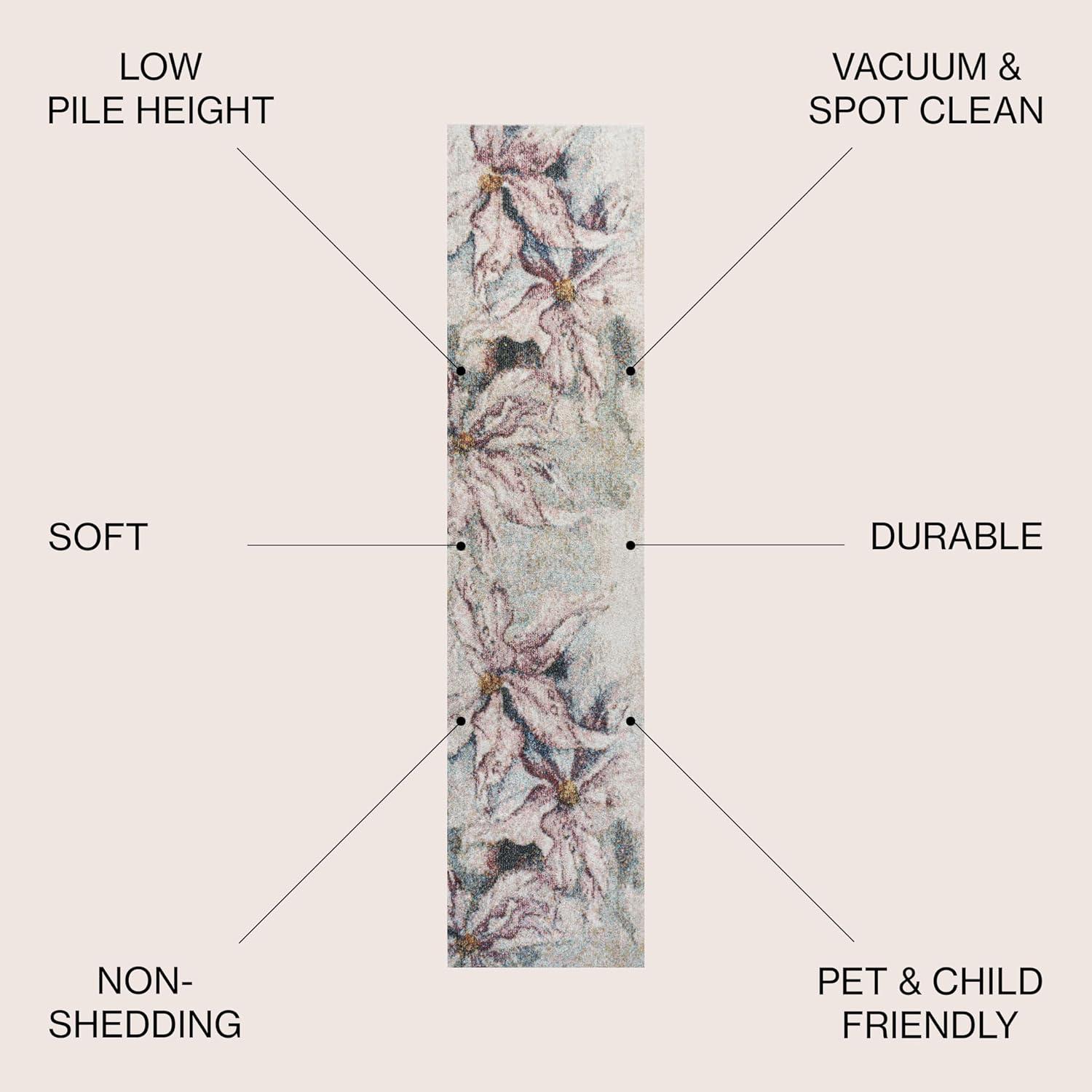 JONATHAN Y Pastello Muted Flowers Pink/Gray Runner Rug 2×8, Modern, Contemporary, Easy-Cleaning for Living Room, Bedroom, Kitchen, Pet Friendly, Non-Shedding (CTP204A-28)(Pink/Gray)
