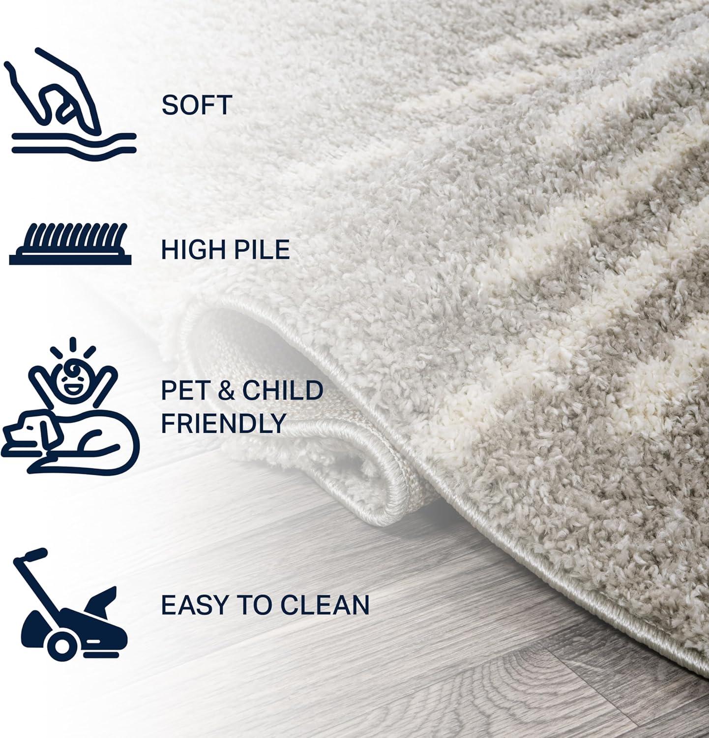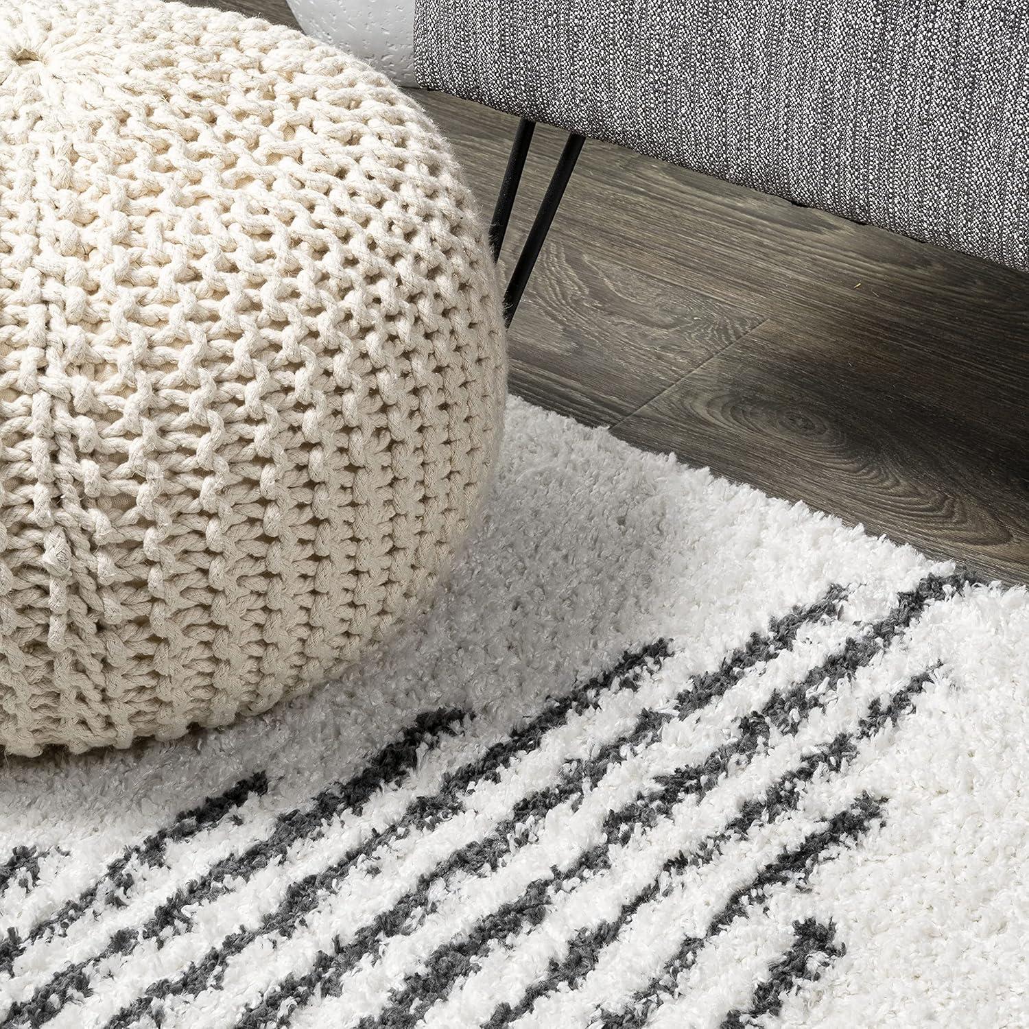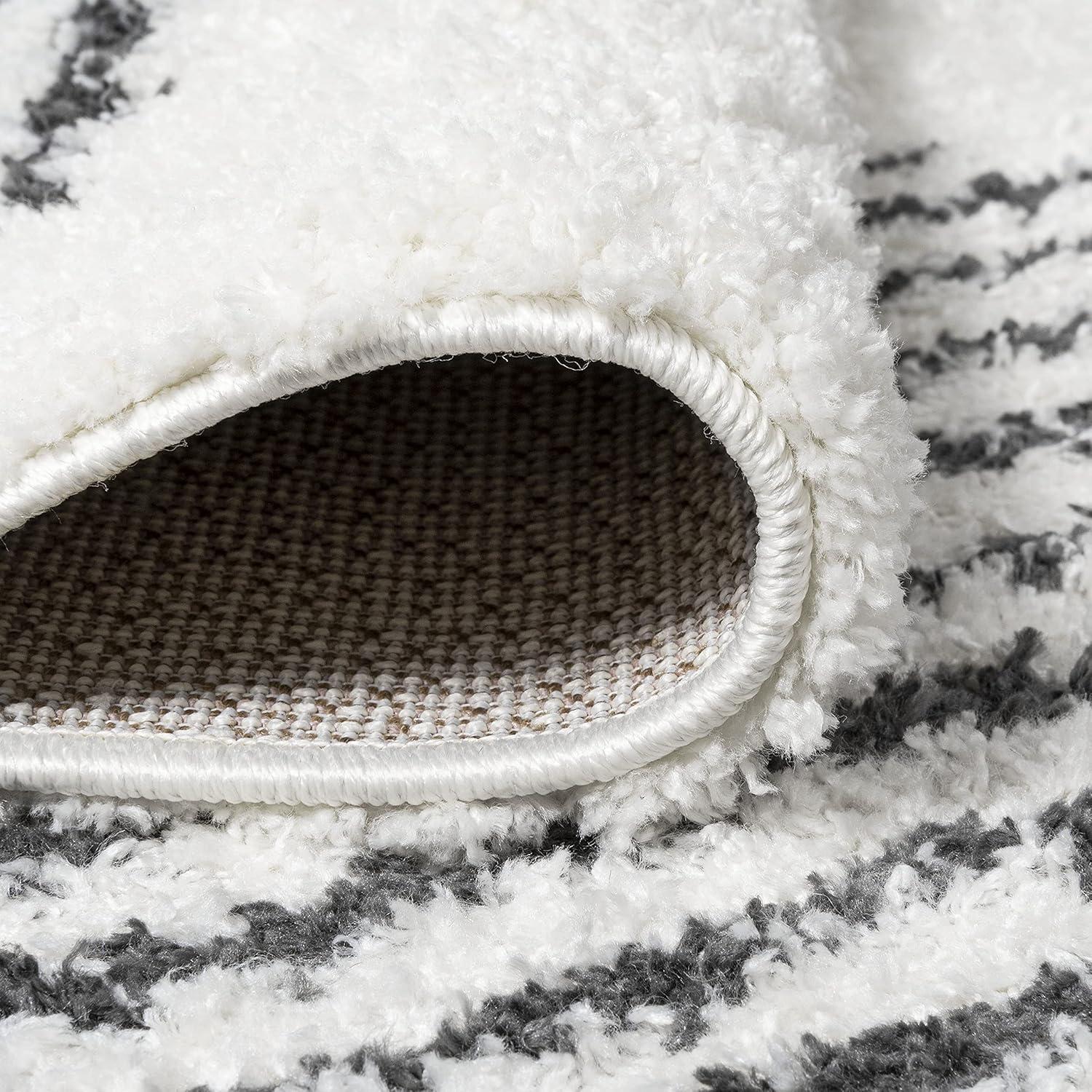 JONATHAN Y Elm Diamond Stripe Shag White/Gray Indoor Area Rug, 8×10, Geometric, Bohemian, Contemporary, Easy-Cleaning for Living Room, Bedroom, Kitchen, Pet Friendly, Non-Shedding (MOH408A-8)(White/Gray)