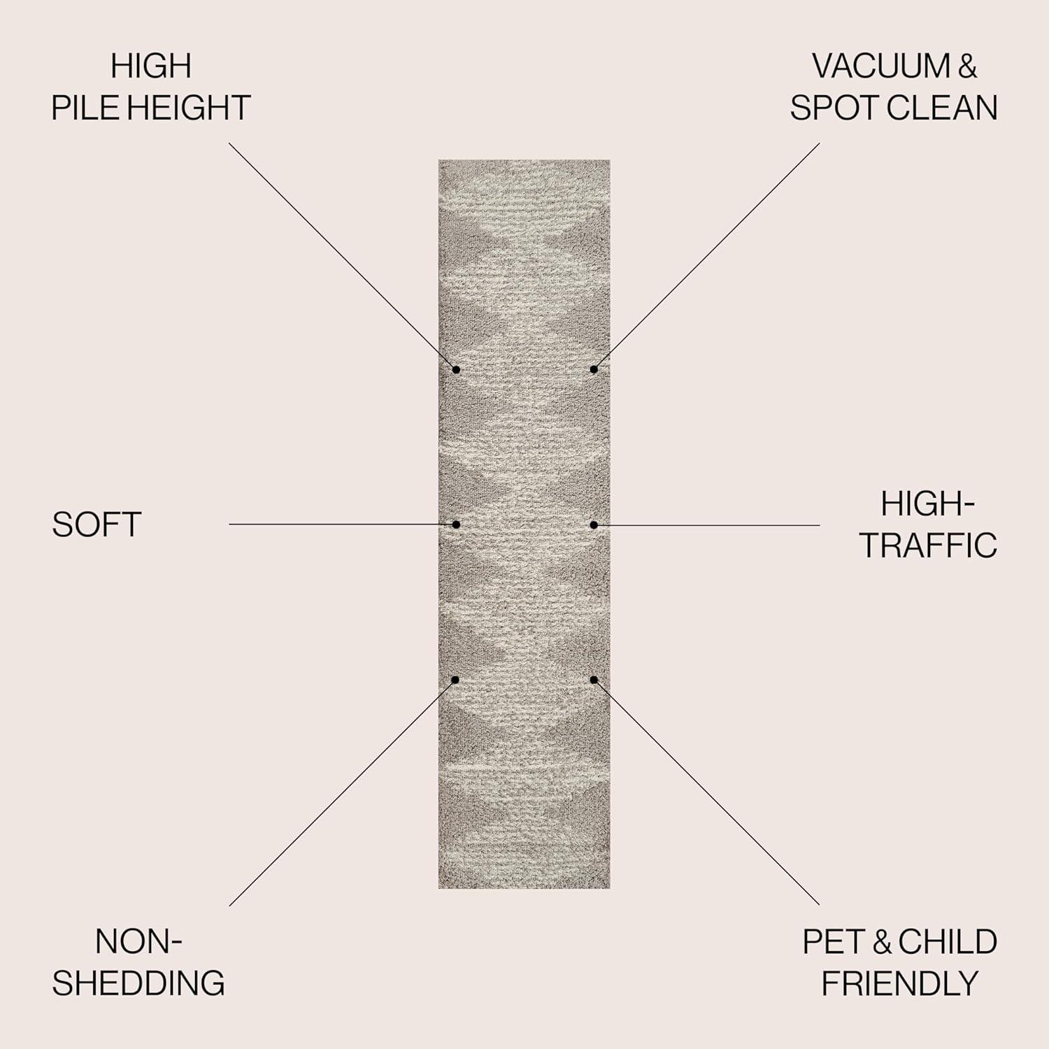 JONATHAN Y Cristo Berber Geometric Shag White/Gray Runner Rug, 2×8, Bohemian, Contemporary, Easy-Cleaning for Living Room, Bedroom, Kitchen, Pet Friendly, Non-Shedding (MOH403A-28)(Gray/Ivory)