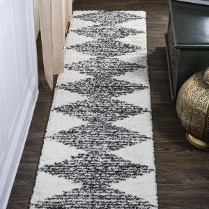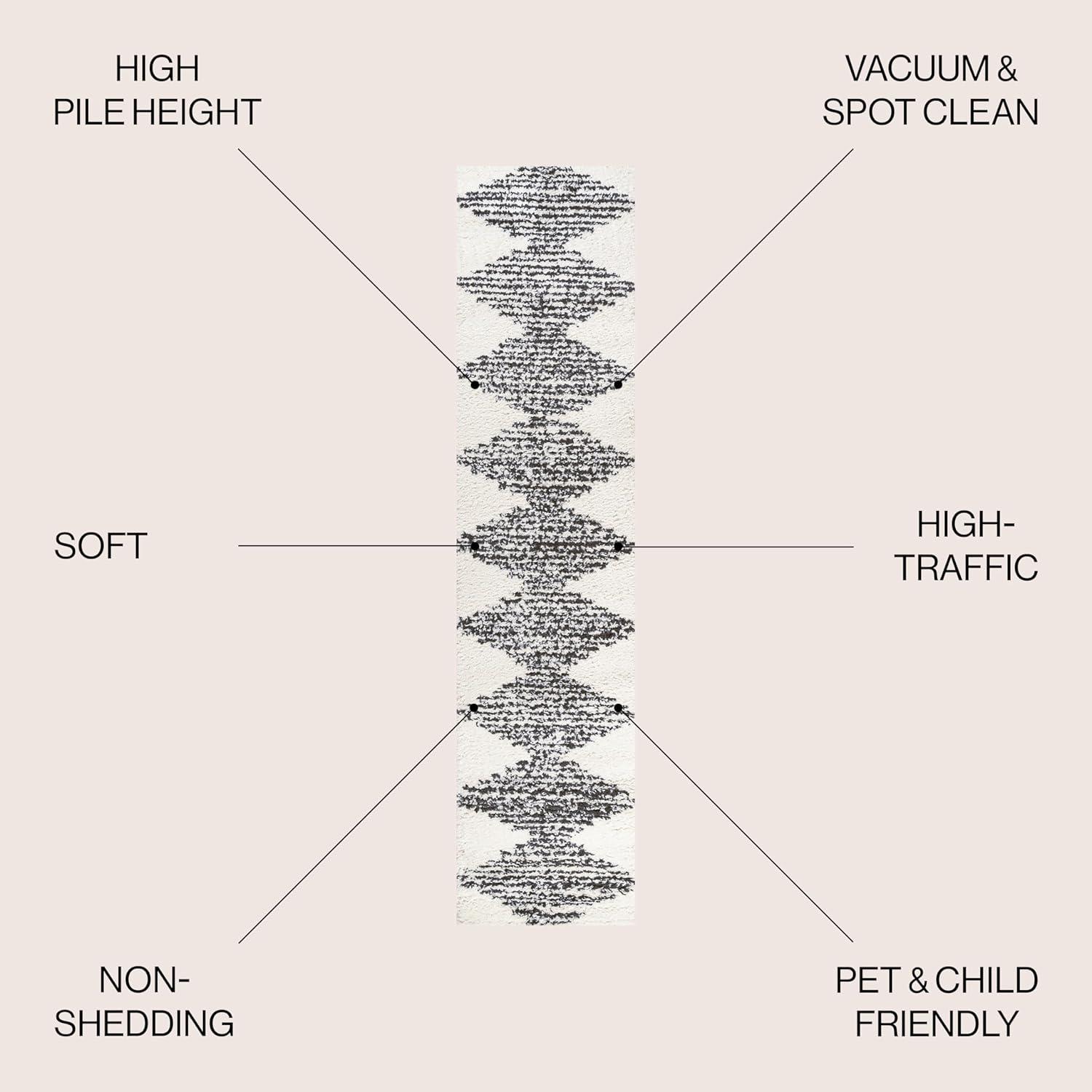 JONATHAN Y Cristo Berber Geometric Shag White/Gray Runner Rug, 2×8, Bohemian, Contemporary, Easy-Cleaning for Living Room, Bedroom, Kitchen, Pet Friendly, Non-Shedding (MOH403A-28)(White/Gray)