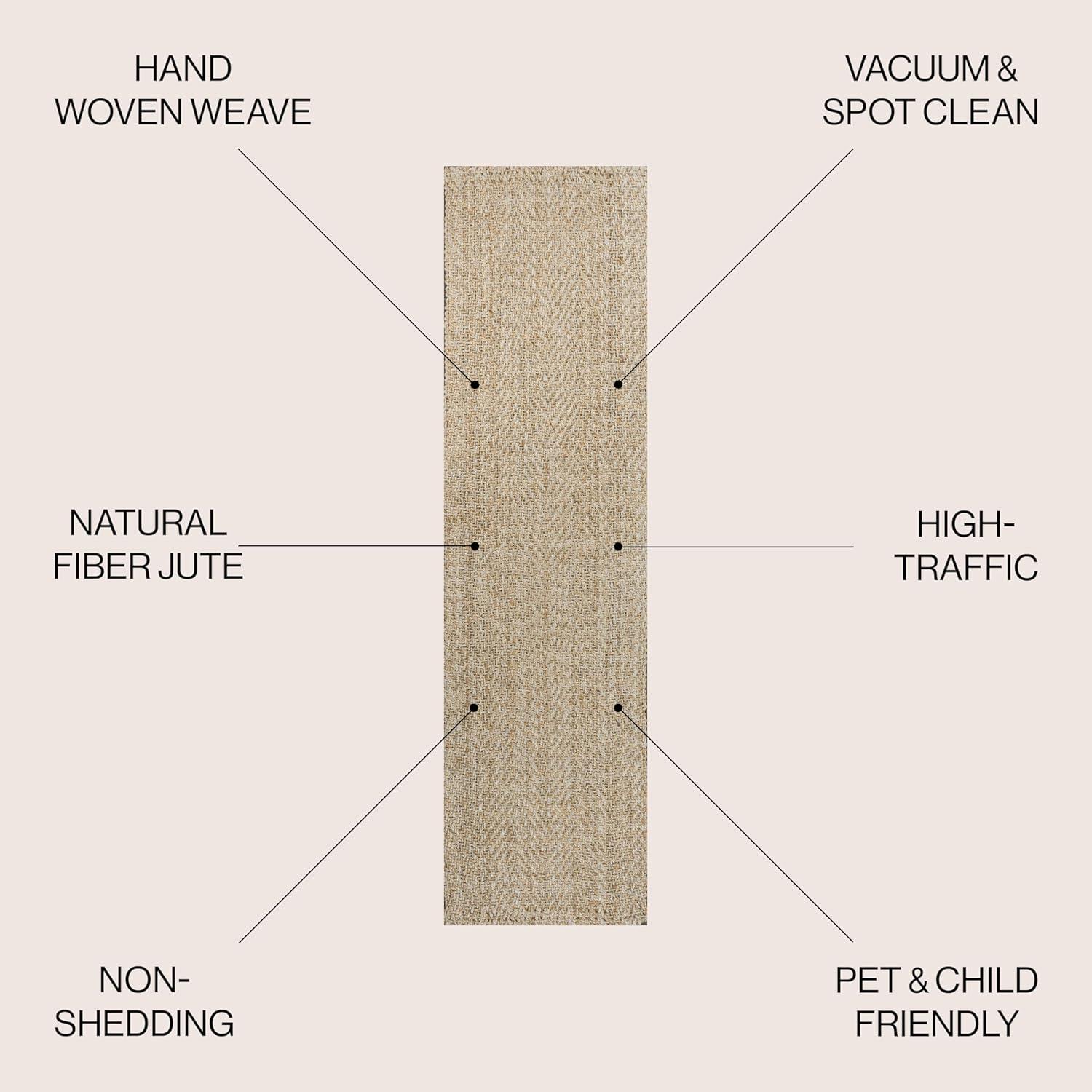 JONATHAN Y Espina Hand Woven Herringbone Chunky Jute Natural Runner Rug, 2×8, Bohemian, Cottage, Easy-Cleaning for Living Room, Bedroom, Kitchen, Pet Friendly, Non-Shedding (NFR101A-28)(Natural)