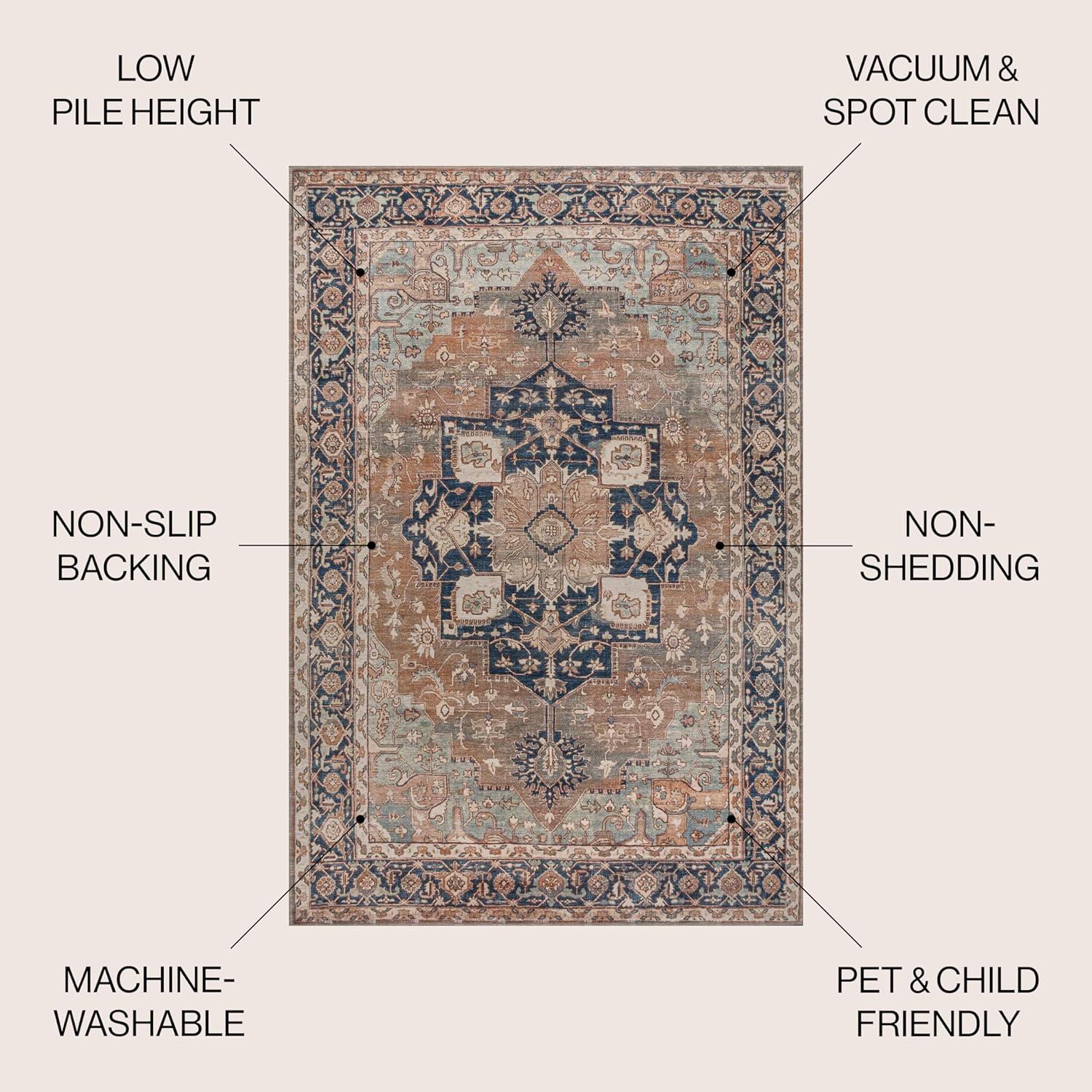 JONATHAN Y Machine Washable Beige/Blue Indoor Area Rug 3X5 ft, Maris Ornate Medallion for Living Room, Bedroom, Kitchen, Office, Easy-Cleaning, High Traffic, Pet-Friendly, Non-Shedding (WSH109D-3)