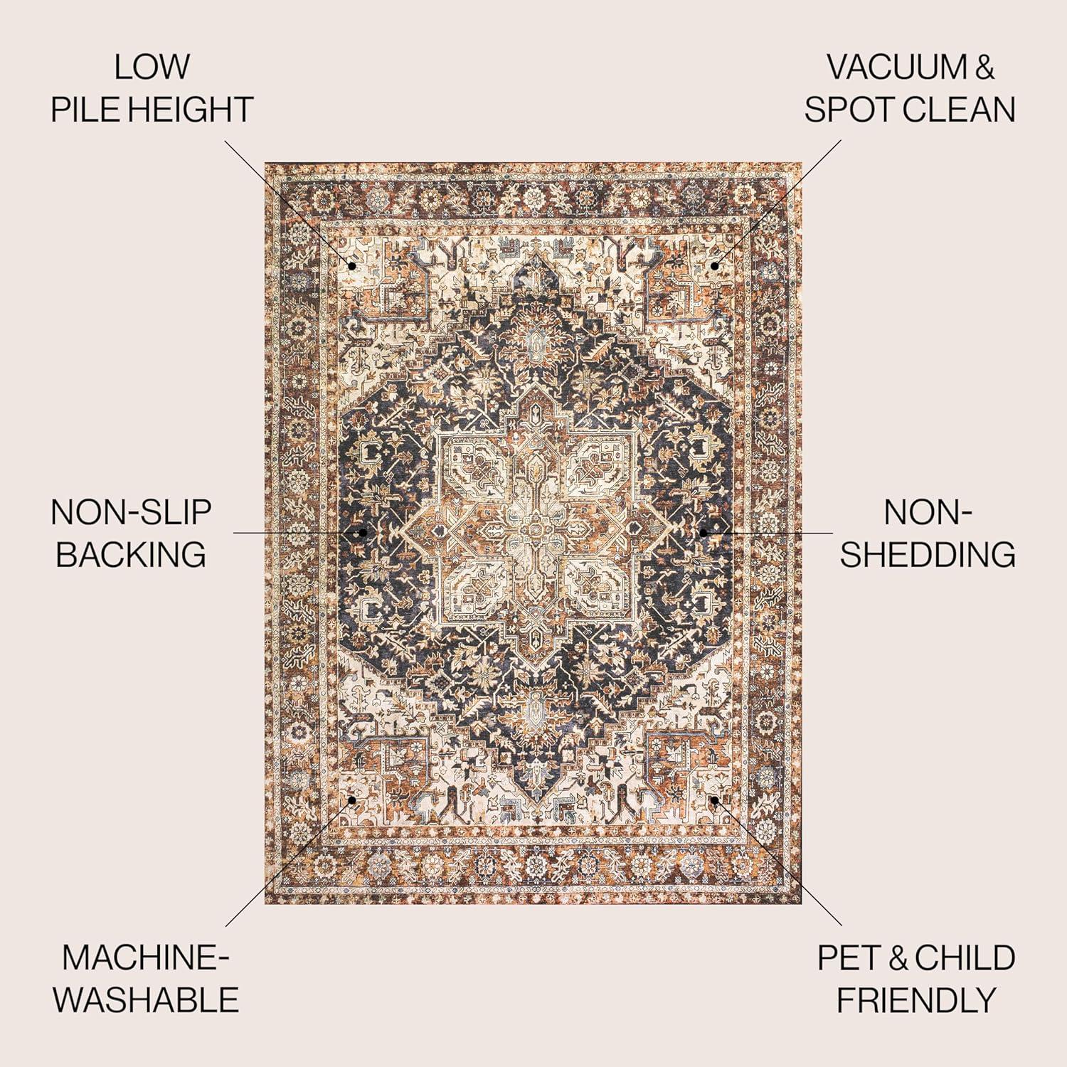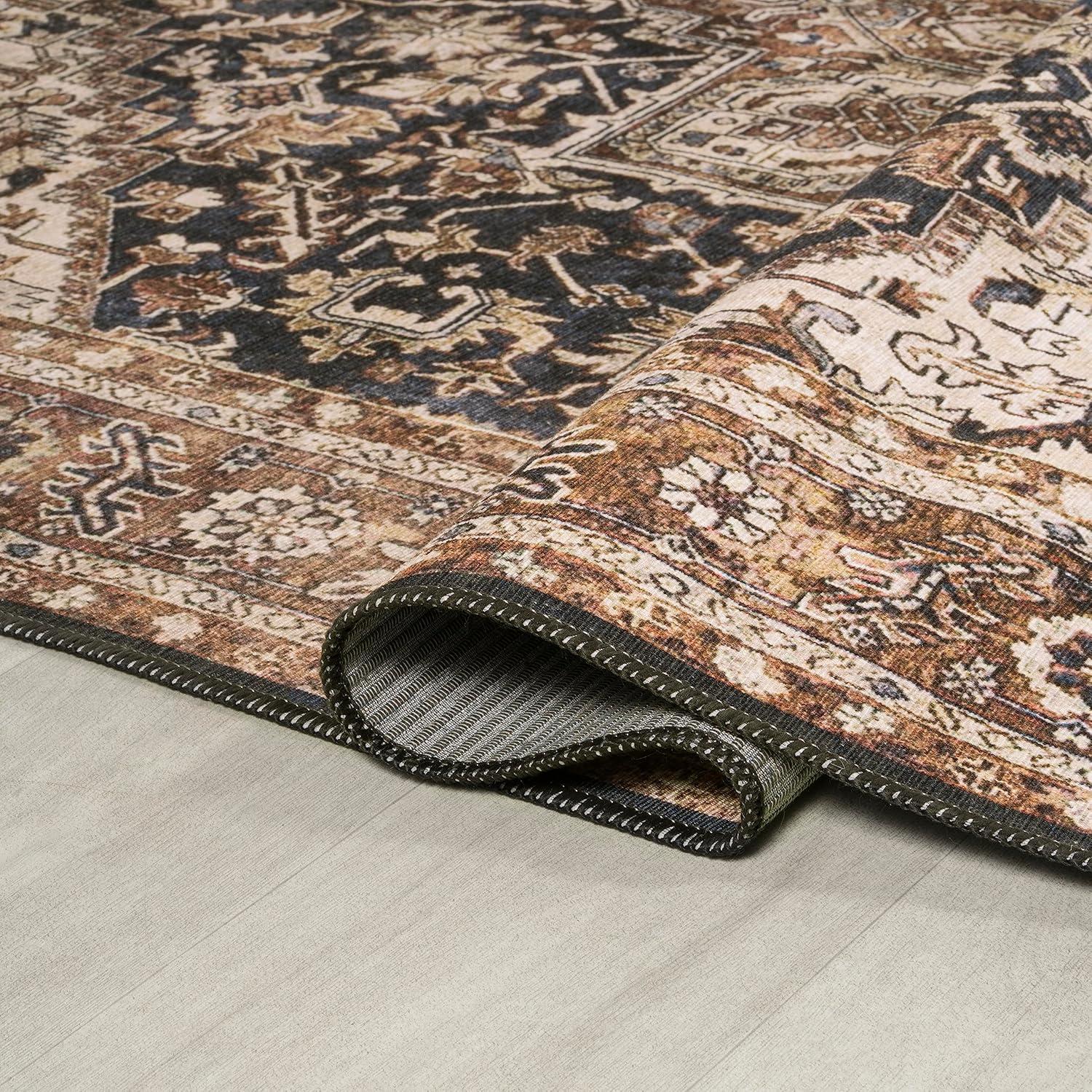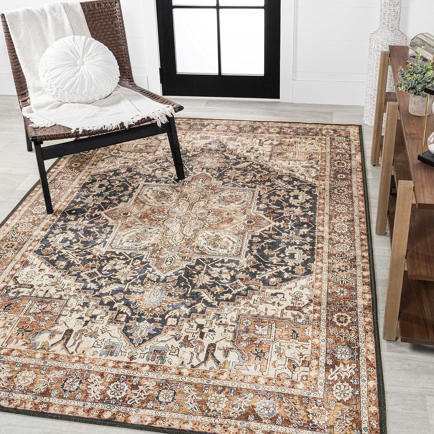 JONATHAN Y Machine Washable Black/Terra Indoor Area Rug 3X5 ft, Chapell Chenille Mid-Century Medallion for Living Room, Bedroom, Kitchen, Office, Easy-Cleaning, Pet-Friendly, Non-Shedding WSH203A-3