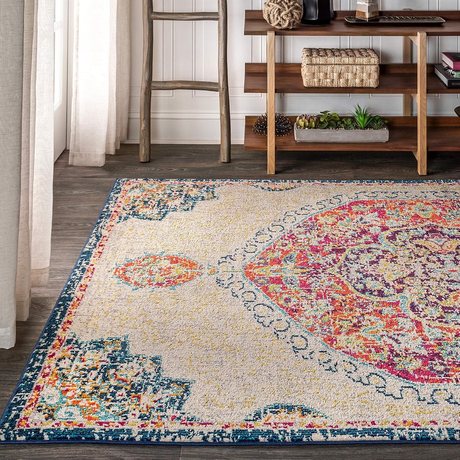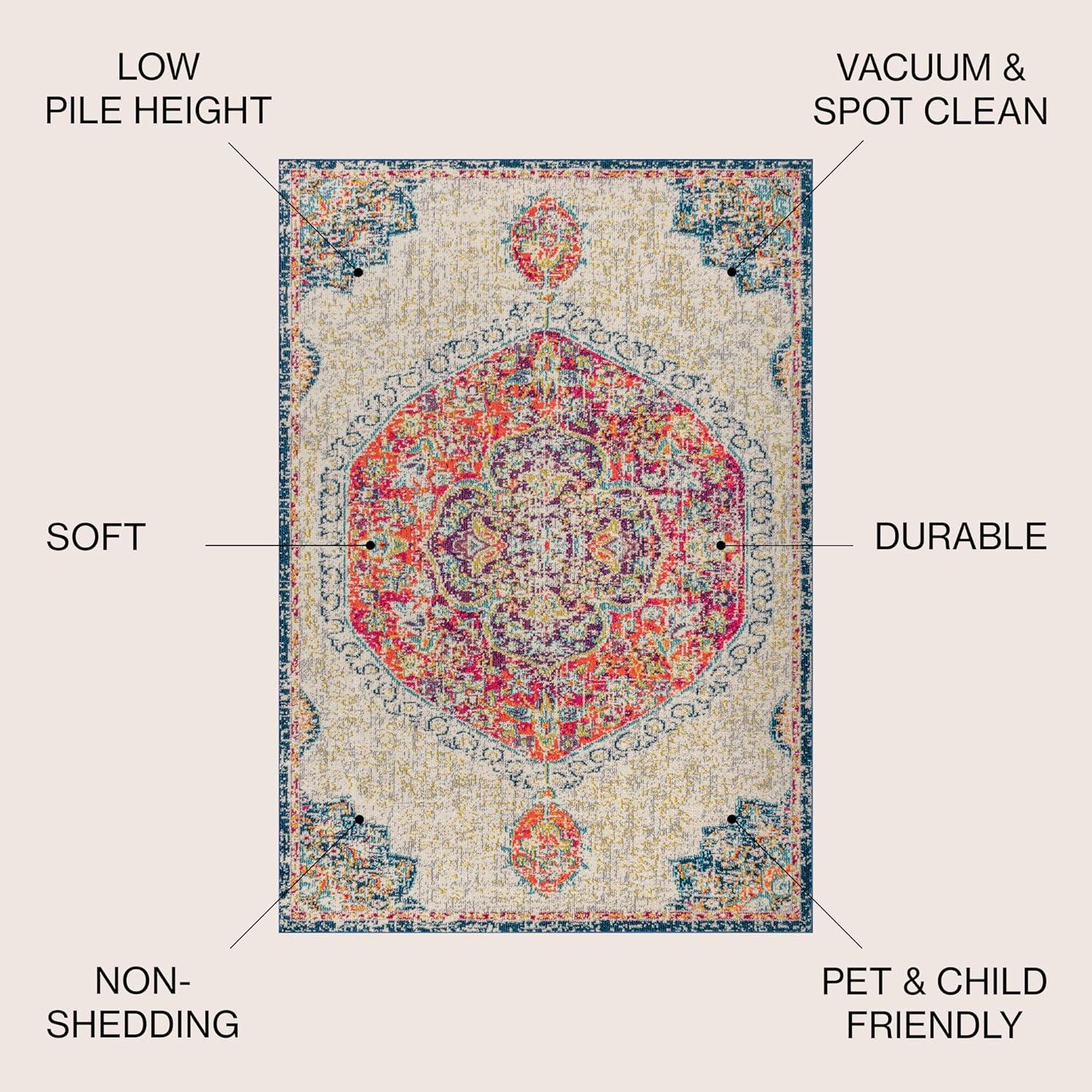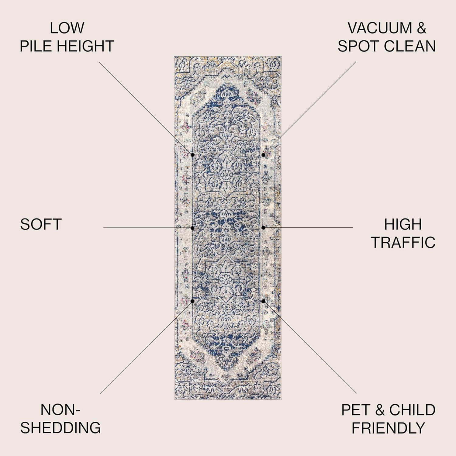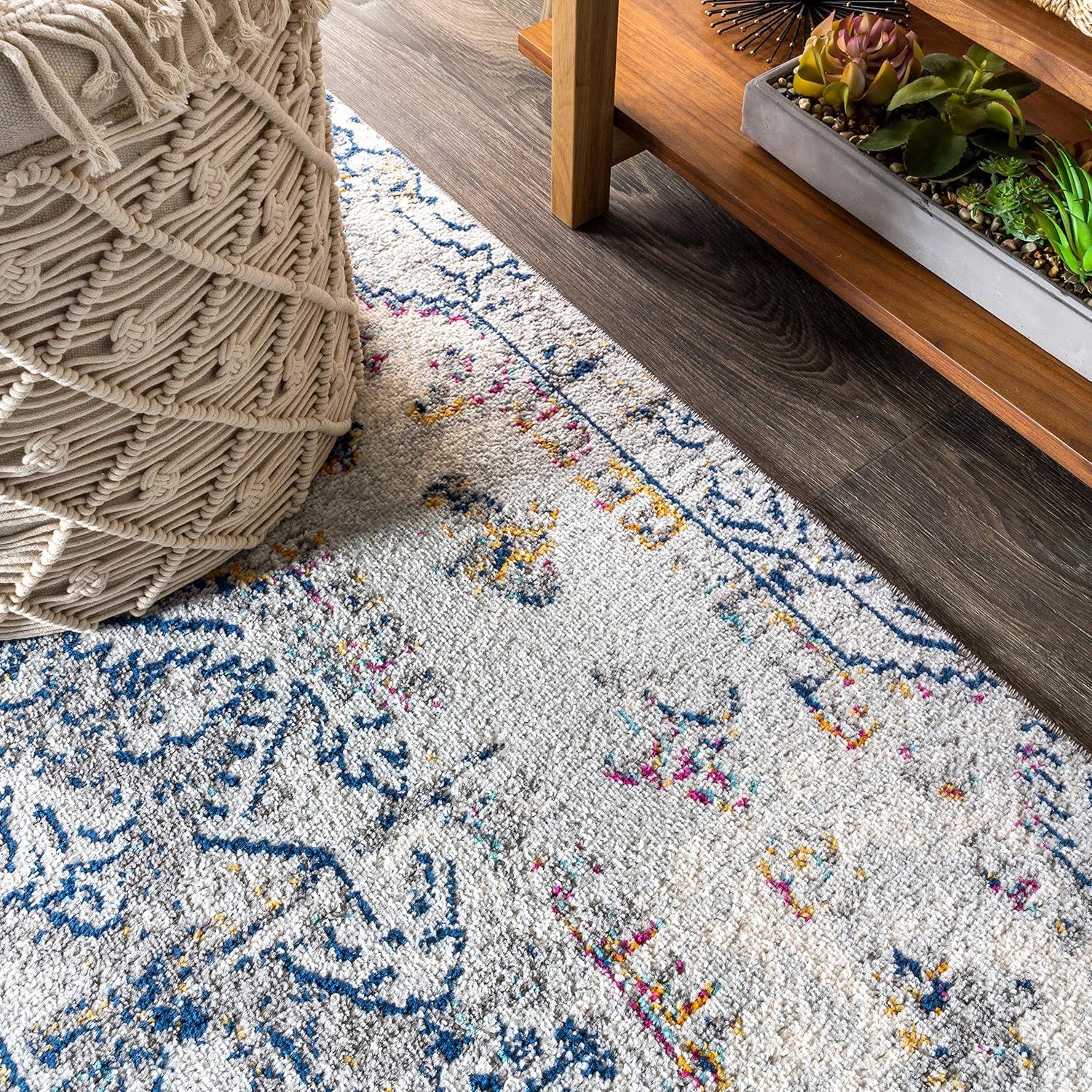 JONATHAN Y Modern Boho Vintage Cream/Blue Indoor Area Rug, 8×10, Bohemian, Traditional, Easy-Cleaning for Living Room, Bedroom, Kitchen, Pet Friendly, Non-Shedding (MDP203A-8)(2’3″ x 8′ (Runner))