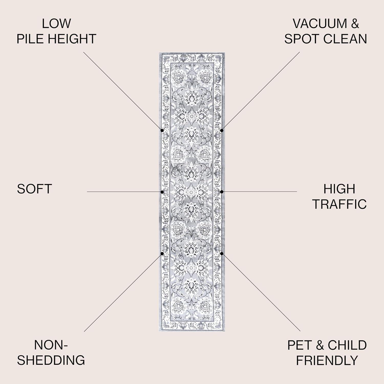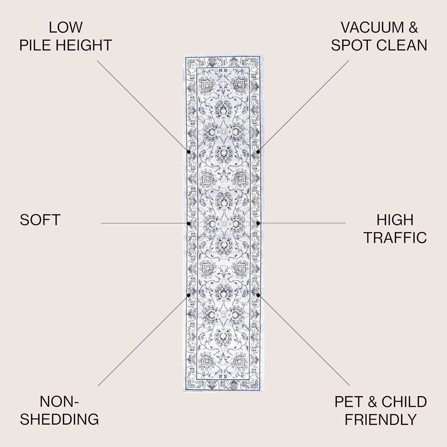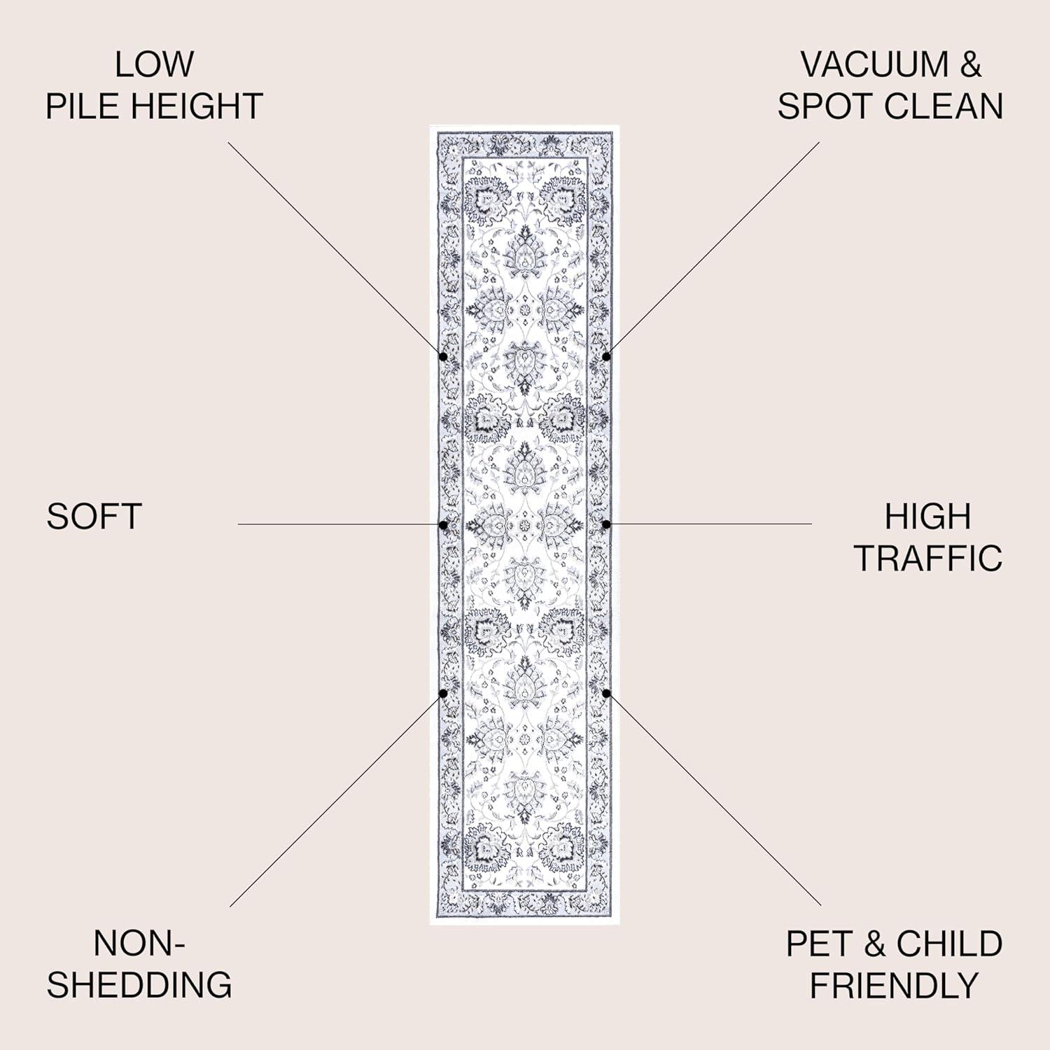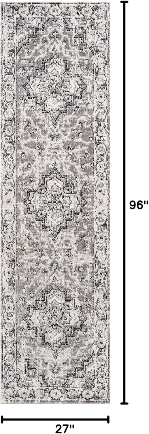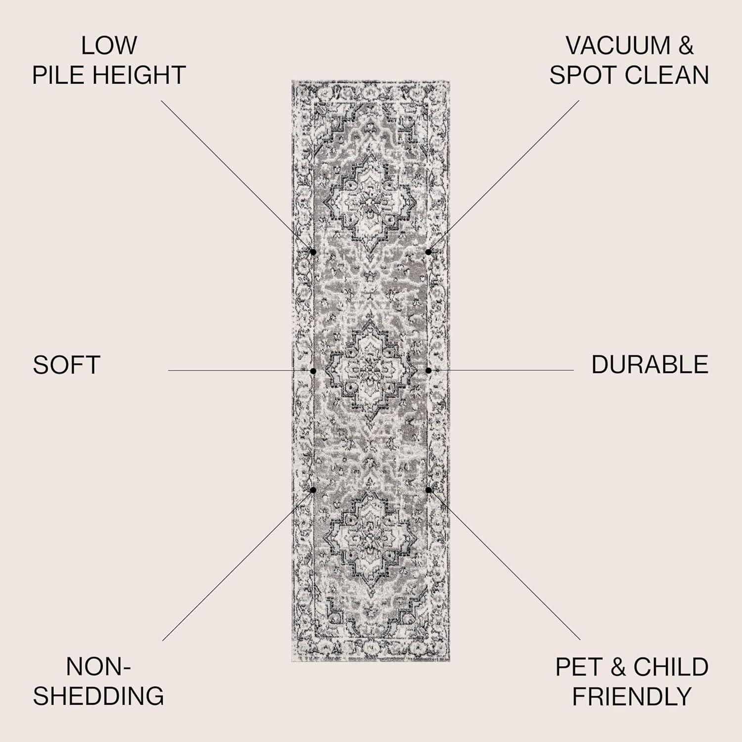 JONATHAN Y Cherie French Cottage Black/Cream Runner Rug, 2×8, Vintage, Bohemian, Easy-Cleaning for Living Room, Bedroom, Kitchen, Pet Friendly, Non-Shedding (MDP505D-28)(Light Gray/Cream)