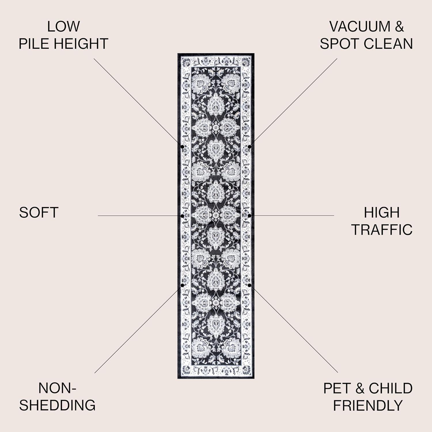 JONATHAN Y Cherie French Cottage Black/Cream Runner Rug, 2×8, Vintage, Bohemian, Easy-Cleaning for Living Room, Bedroom, Kitchen, Pet Friendly, Non-Shedding (MDP505D-28)(Gray/Cream)