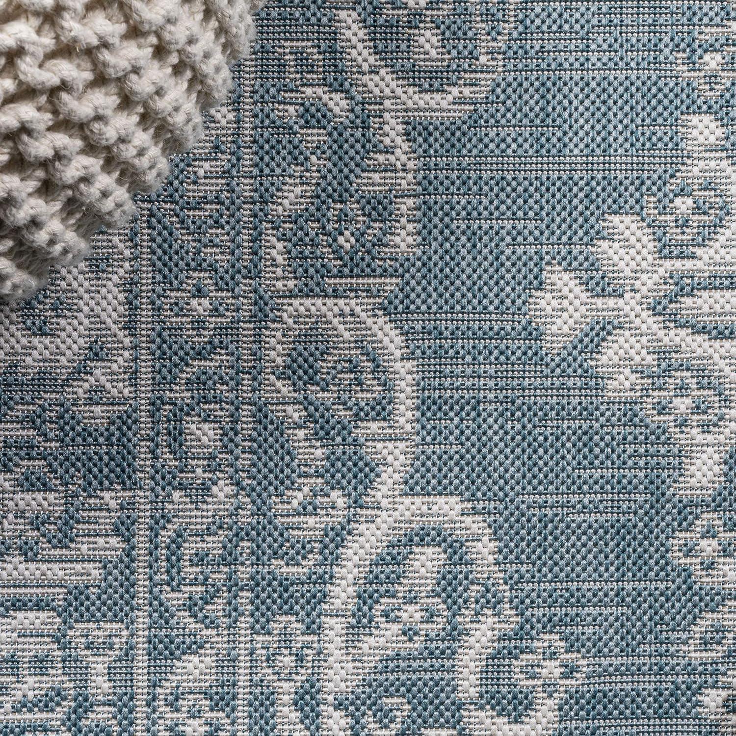 JONATHAN Y Filigree Indoor Outdoor Runner Rug 2X8 Teal/Ivory, Galon for Backyard, Patio, Porch, Easy-Cleaning, High Traffic, Pet-Friendly, Non-Shedding (SMB120B-28)(Blue/Beige)