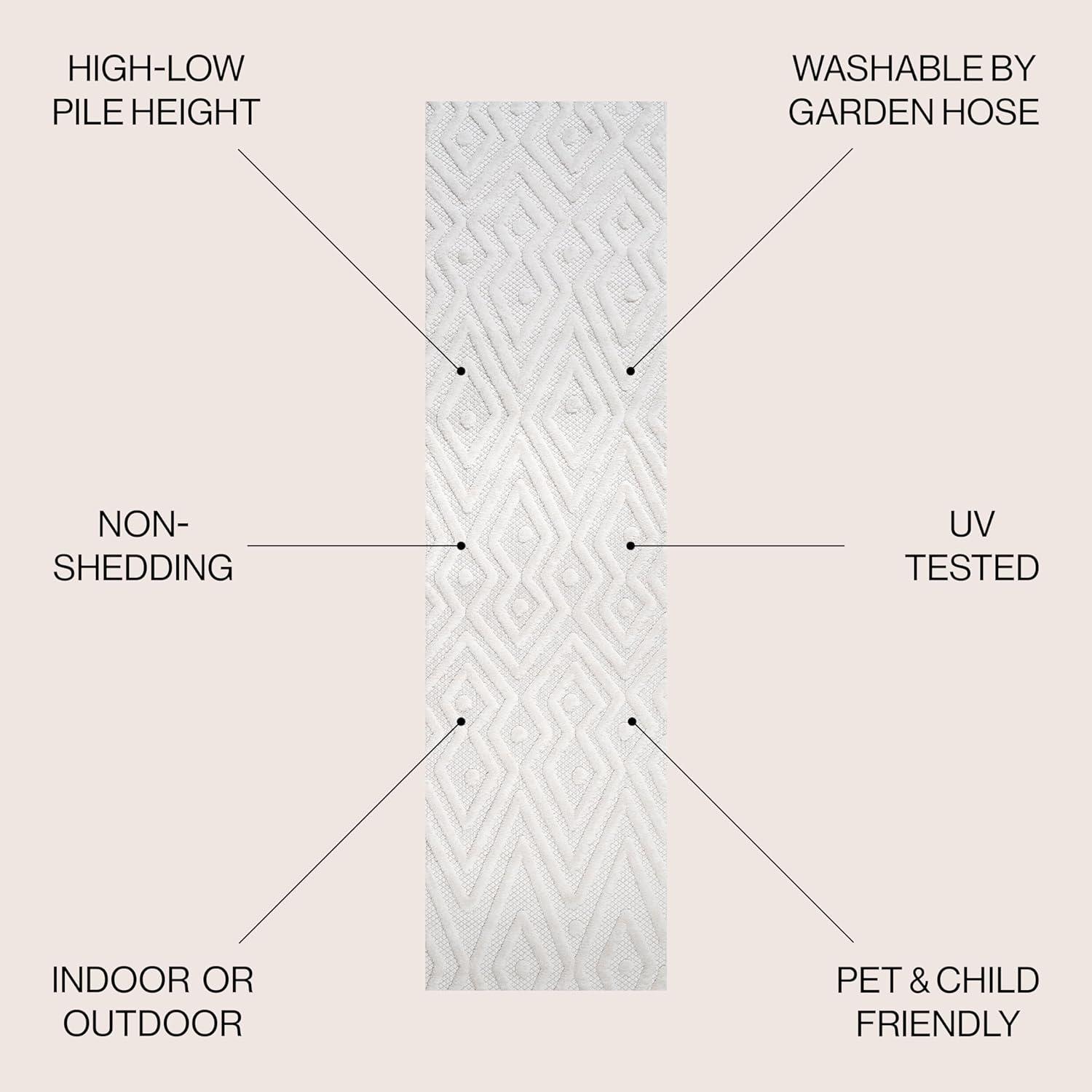 JONATHAN Y Moroccan Diamond Indoor Outdoor Round Area Rug 5 Ft Ivory, Balansat for Backyard, Patio, Porch, Easy-Cleaning, High Traffic, Pet-Friendly, Non-Shedding (IBZ100D-5R)(Ivory)