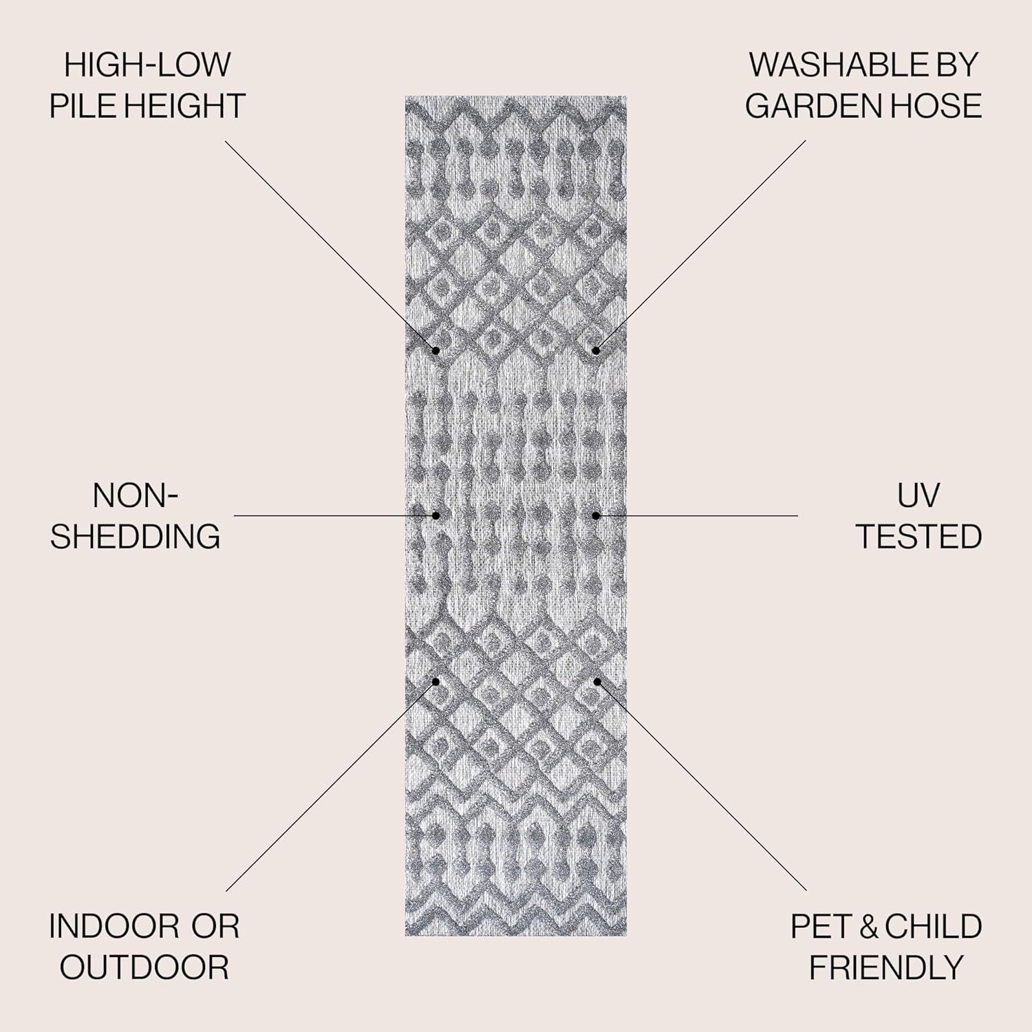 JONATHAN Y Moroccan Diamond Indoor Outdoor Round Area Rug 5 Ft Light Gray, Peralta for Backyard, Patio, Porch, Easy-Cleaning, High Traffic, Pet-Friendly, Non-Shedding (IBZ103C-5R)(Dark Gray)