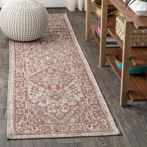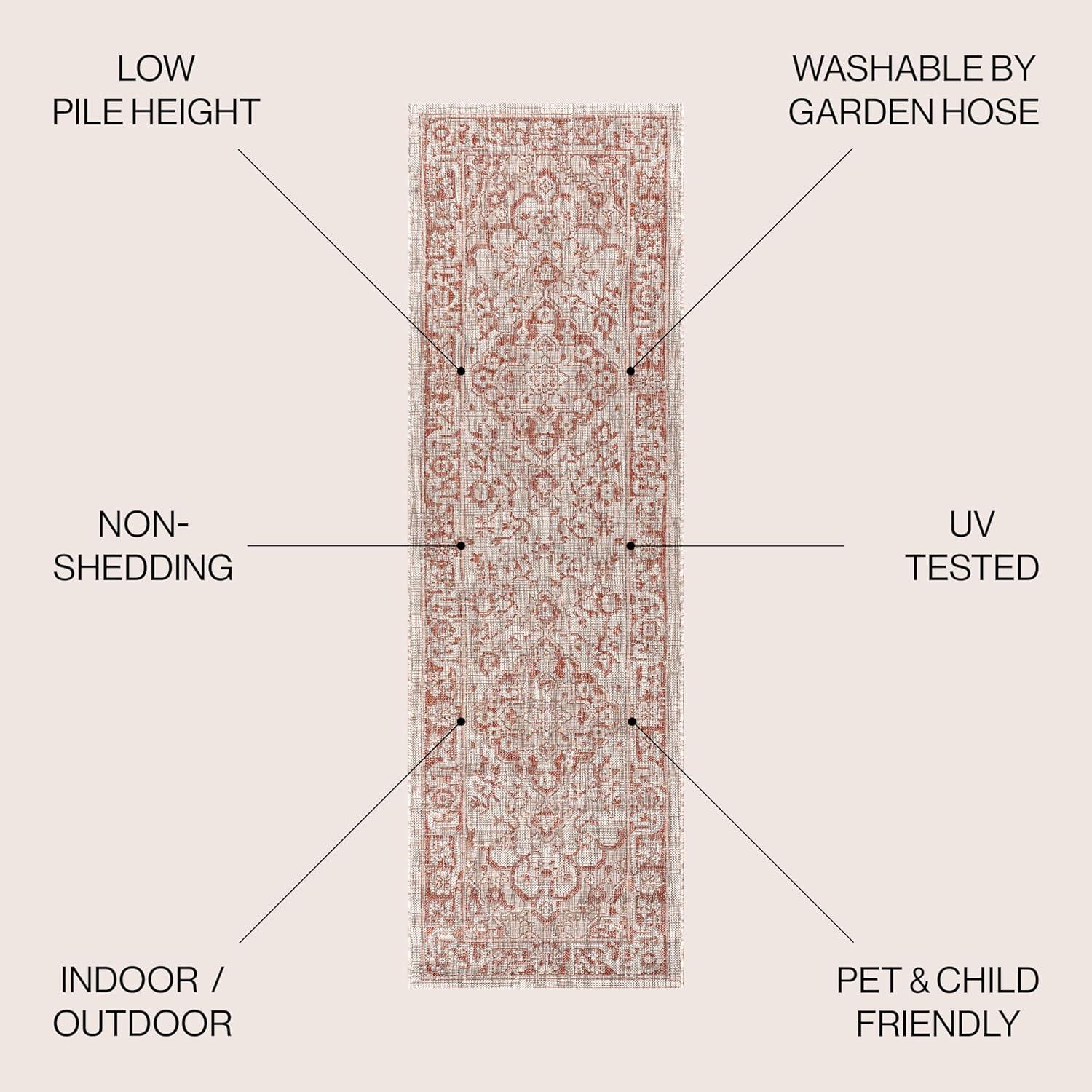 JONATHAN Y Boho Medallion Indoor Outdoor Area Rug 8X10 Gray/Teal, Rozetta Textured Weave for Backyard, Patio, Porch, Easy-Cleaning, High Traffic, Pet-Friendly, Non-Shedding (SMB102C-8)(Red/Taupe)