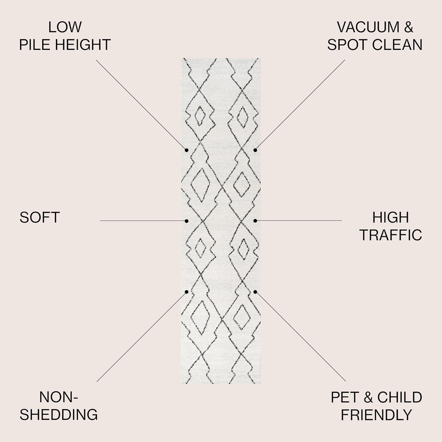 JONATHAN Y Alia Moroccan Beni Souk Cream/Black Runner Rug, 2×8, Bohemian, Scandinavian, Easy-Cleaning for Living Room, Bedroom, Kitchen, Pet Friendly, Non-Shedding (MOH202A-28)(Cream/Black)