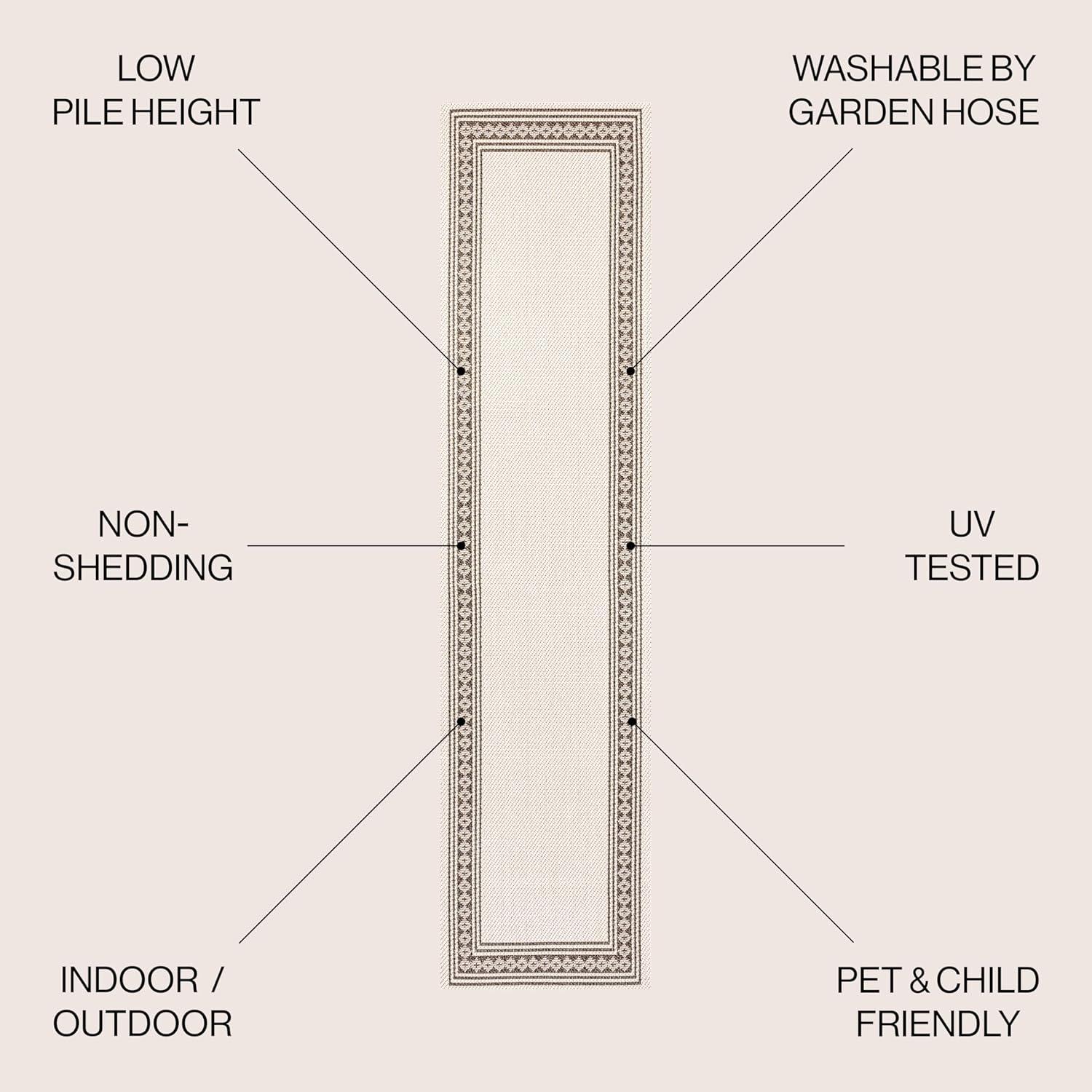 JONATHAN Y Diamond Border Indoor Outdoor Runner Rug 2X8 Cream/Orange, Lucia Classic for Backyard, Patio, Porch, Easy-Cleaning, High Traffic, Pet-Friendly, Non-Shedding (SMB207F-28)(Cream/Black)