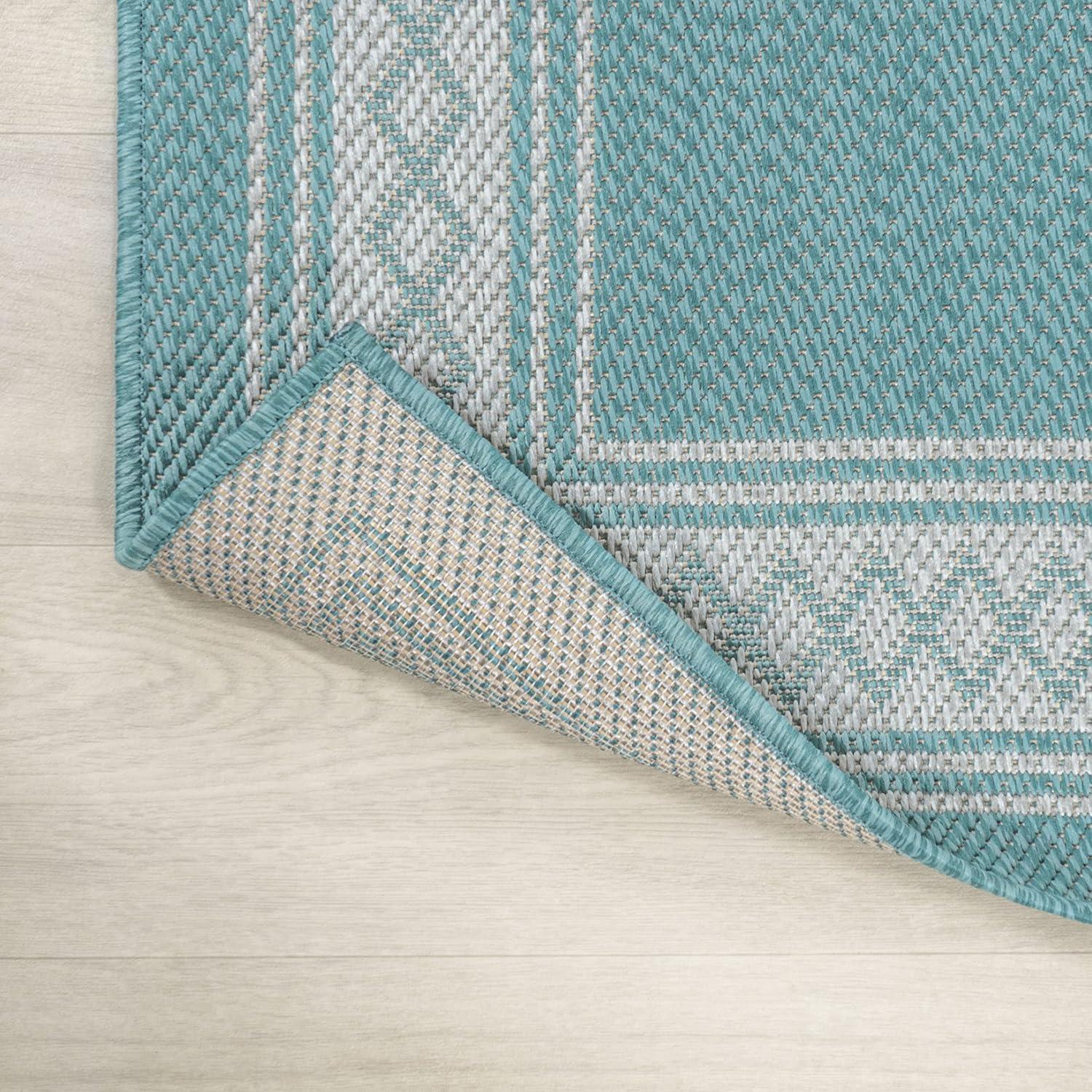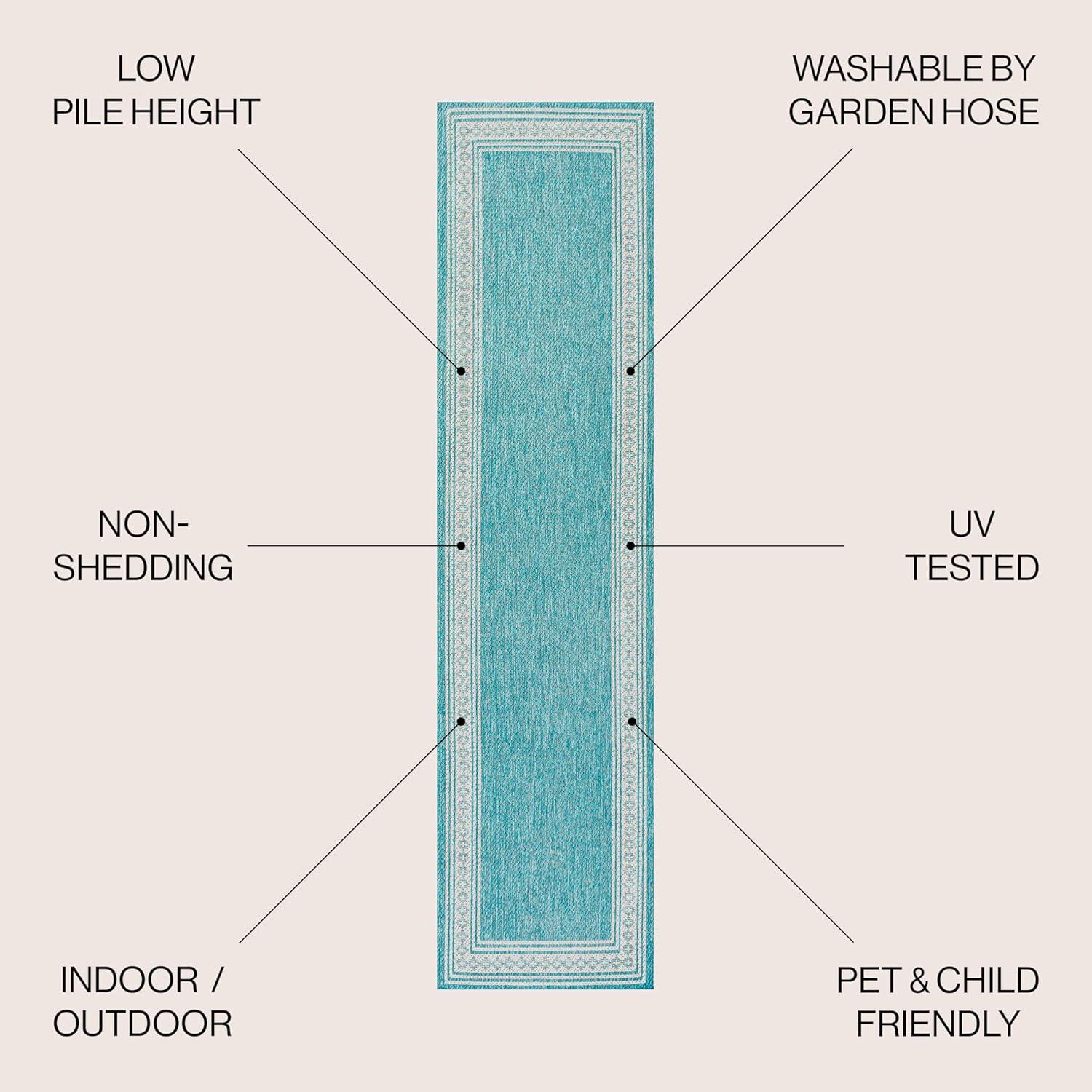 JONATHAN Y Diamond Border Indoor Outdoor Runner Rug 2X8 Cream/Orange, Lucia Classic for Backyard, Patio, Porch, Easy-Cleaning, High Traffic, Pet-Friendly, Non-Shedding (SMB207F-28)(Aqua/Light Gray)