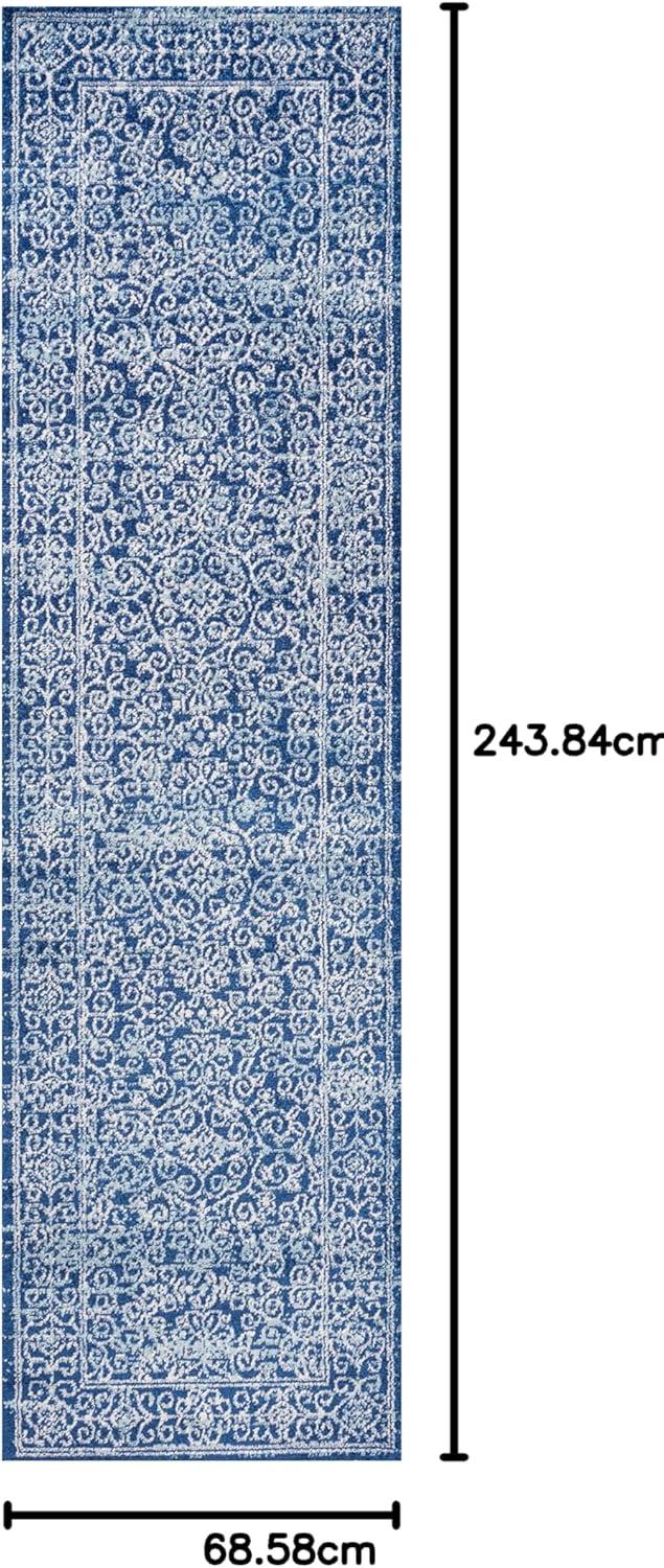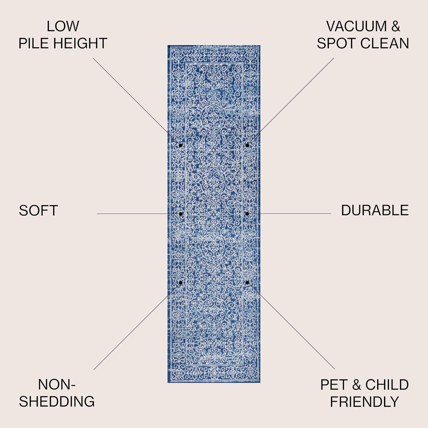 JONATHAN Y Bohemian Ferro Filigree Blue Runner Rug, 2×8, Vintage, Casual, Transitional, Easy-Cleaning for Living Room, Bedroom, Kitchen, Pet Friendly, Non-Shedding (BMF108B-28)(Blue)