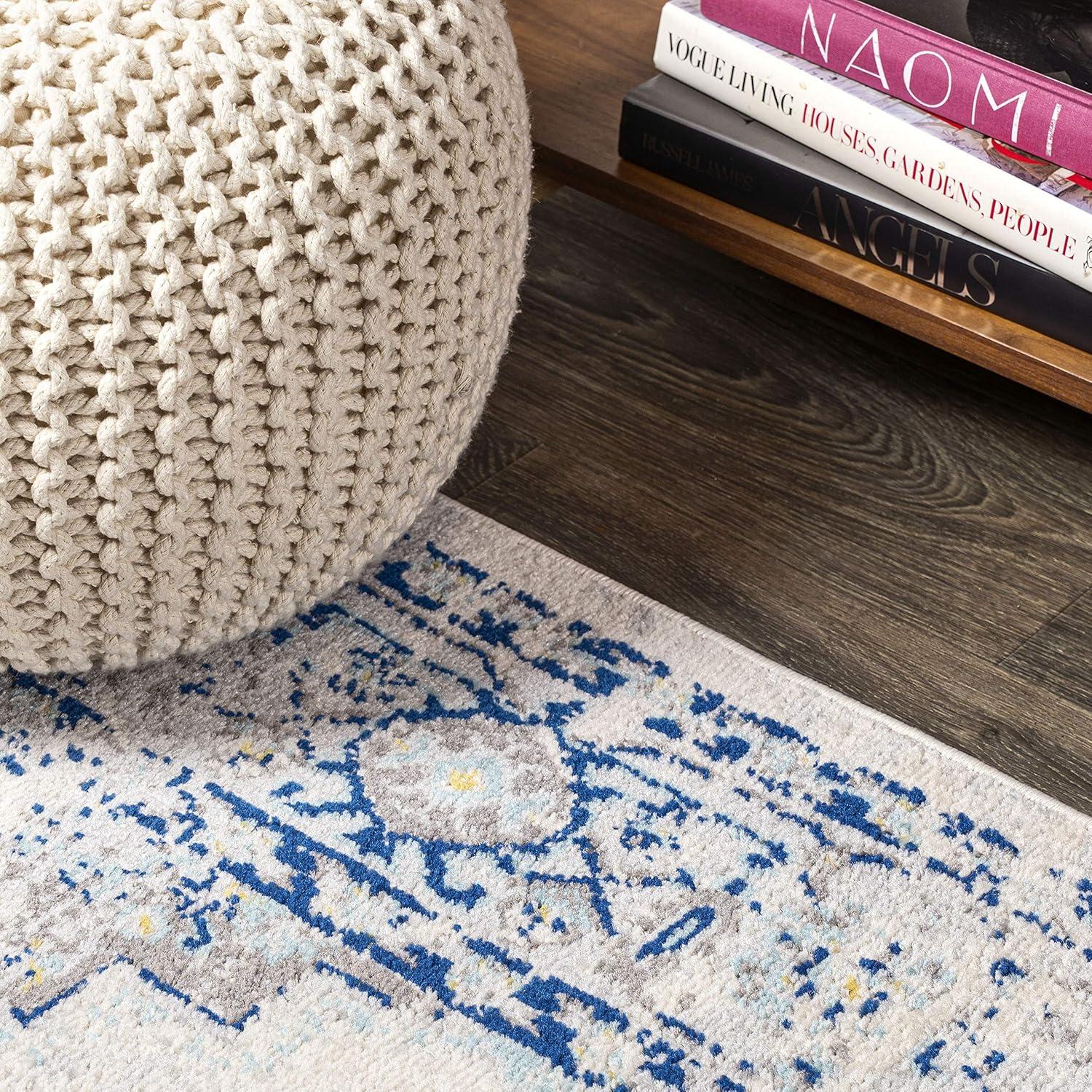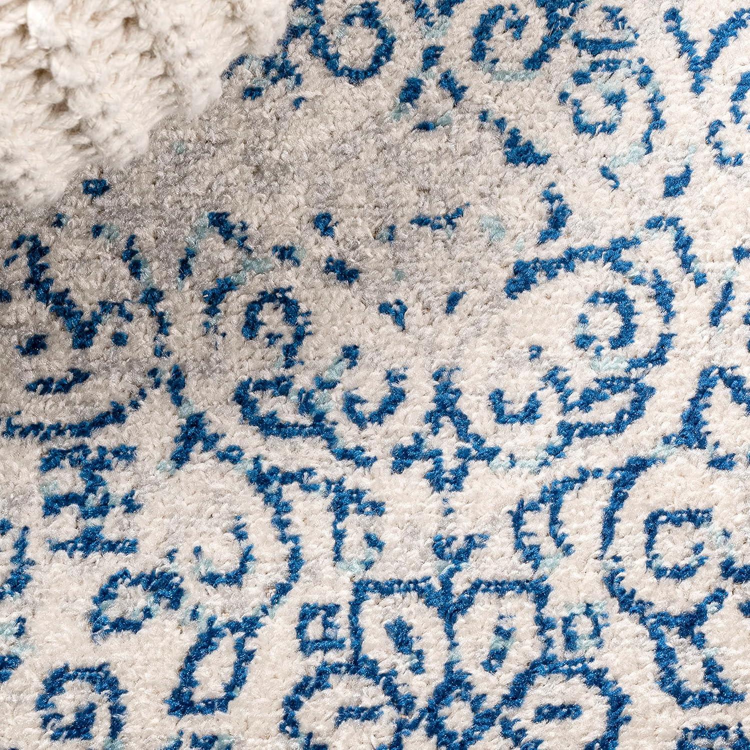 JONATHAN Y Inigo Cottage Medallion Dark Gray/Cream Runner Rug, 2×8, Bohemian, Transitional, Easy-Cleaning for Living Room, Bedroom, Kitchen, Pet Friendly, Non-Shedding (BMF107B-28)(Blue)