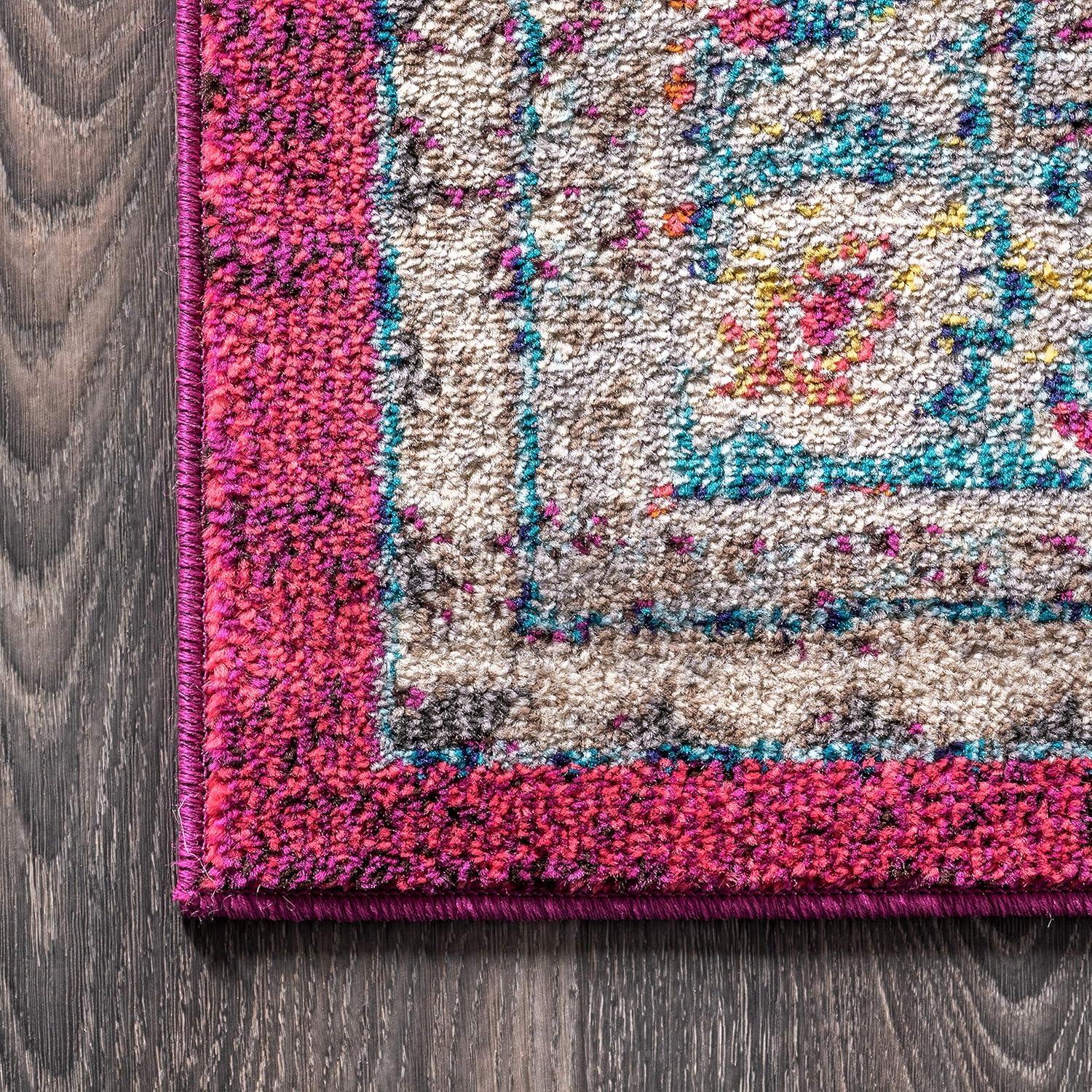 JONATHAN Y Boho Vintage Blue/Yellow Runner Rug, 2×8, Bohemian Flair Chic Medallion, Floral Easy-Cleaning High Traffic, for Living Room, Bedroom, Kitchen, Non Shedding (BMF102A-28)(Pink/Cream)