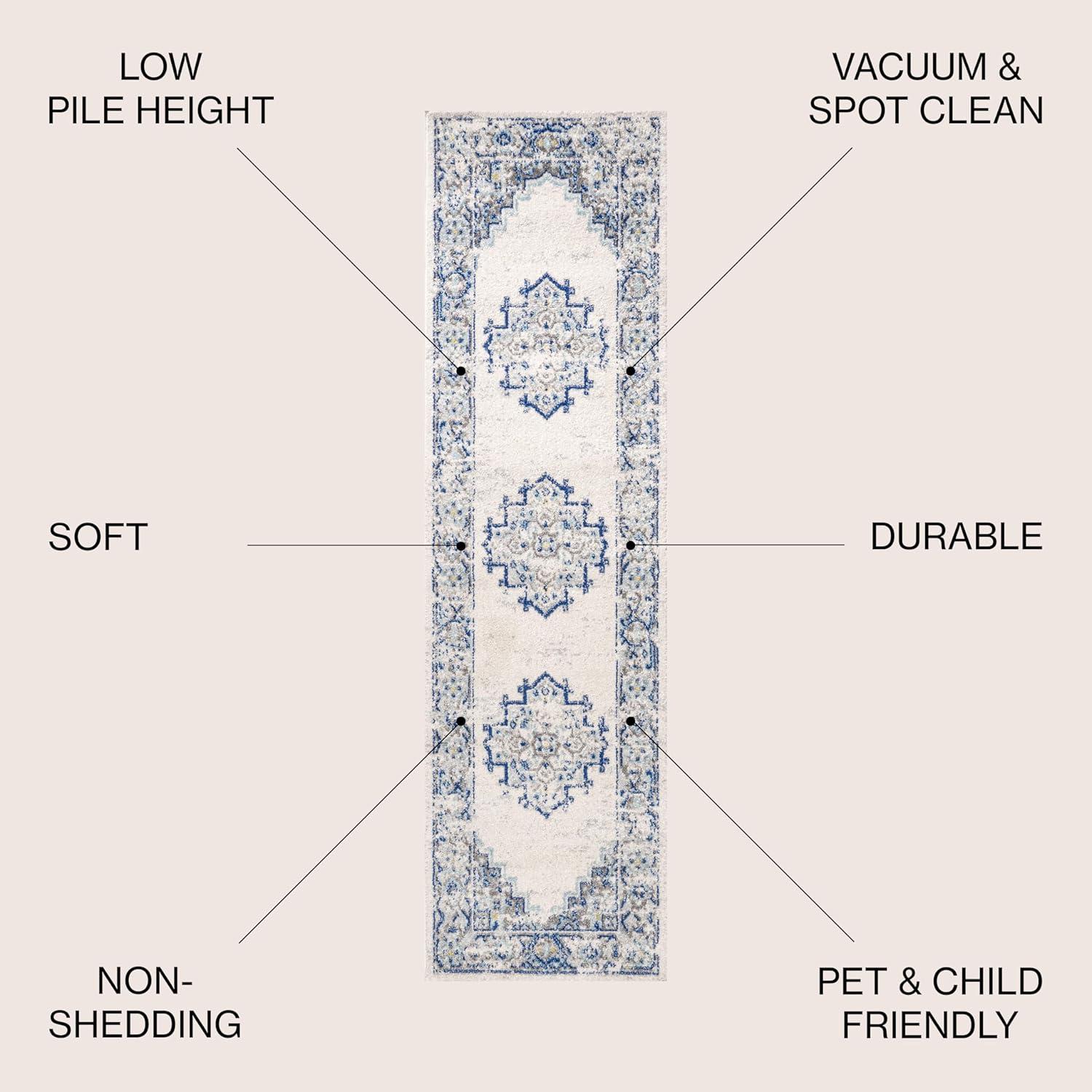 - Don't miss out on our limited-time offer: buy JONATHAN Y Bohemian Ferro Filigree Blue Runner Rug, 2x8, Vintage, Casual, Transitional, Easy-Cleaning for Living Room, Bedroom, Kitchen, Pet Friendly, Non-Shedding (BMF108B-28)(Gray/Dark Gray), get {accessory} free!