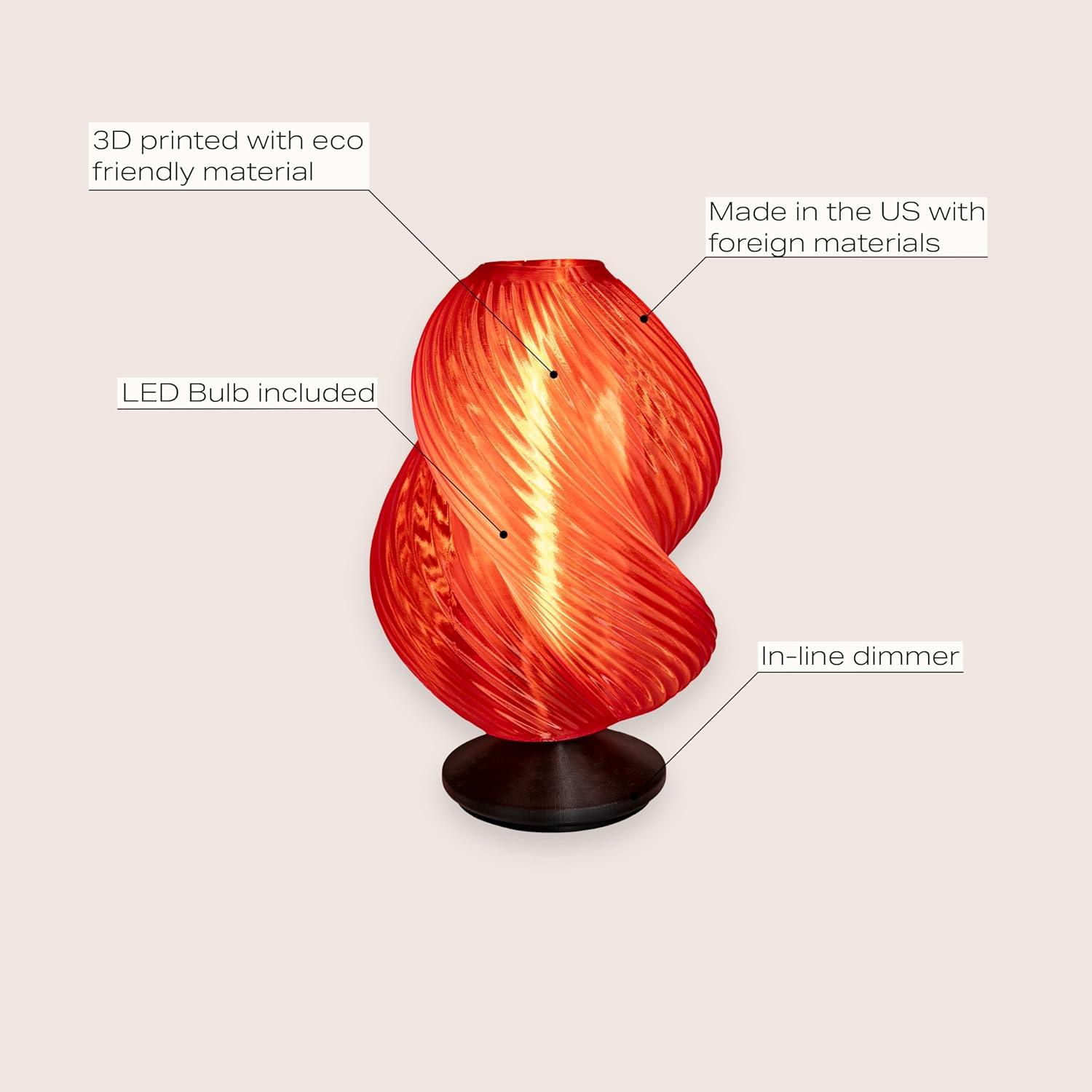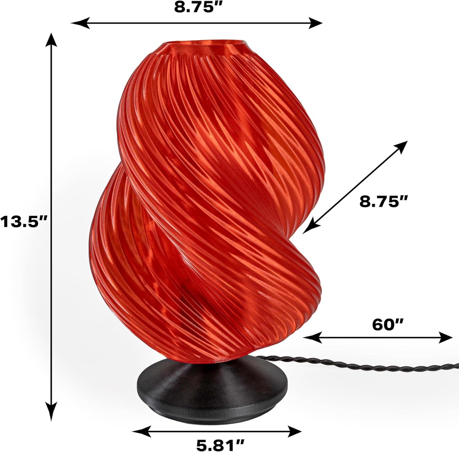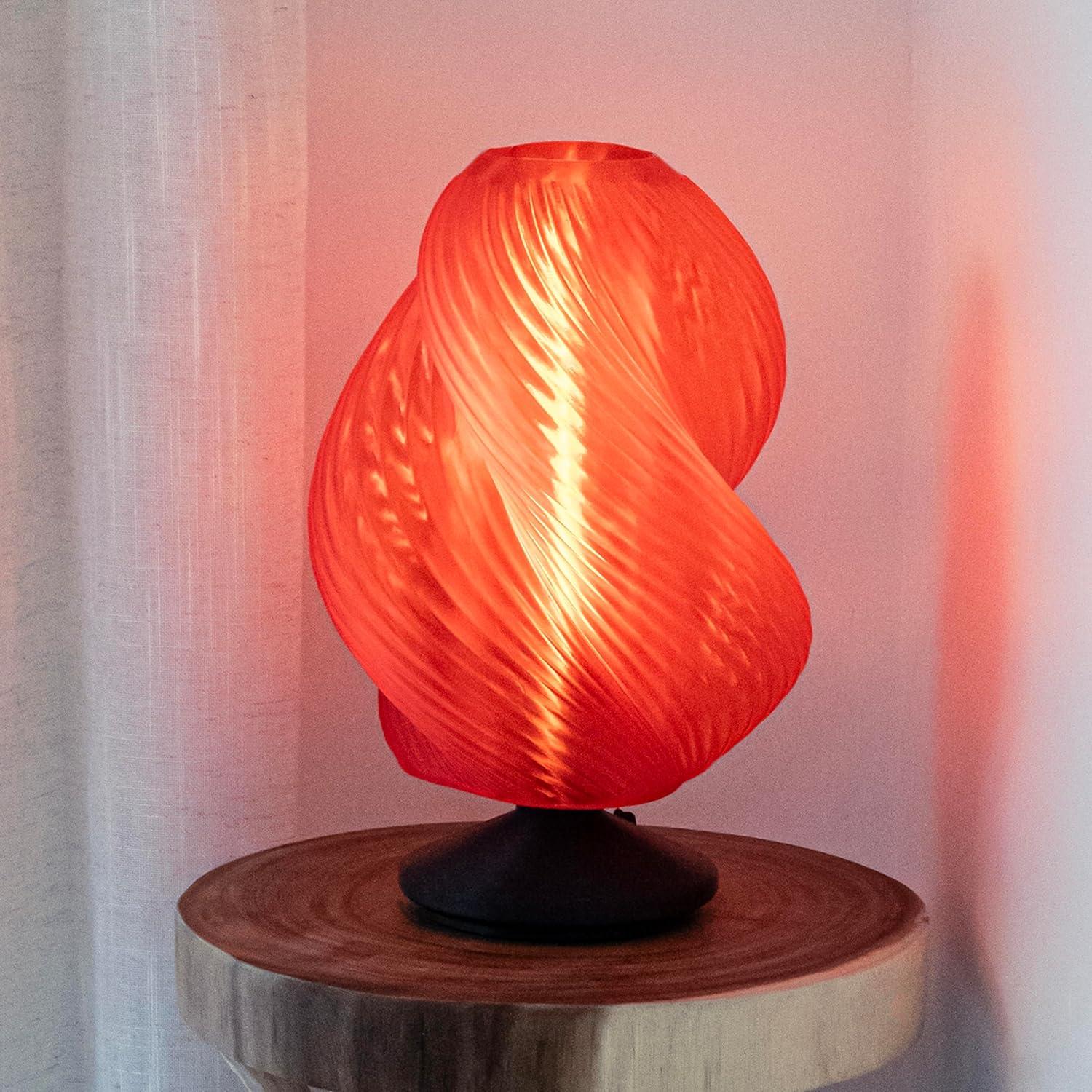 JONATHAN Y USA1009A Gema 13.5″ Mid-Century Coastal Plant-Based PLA 3D Printed Dimmable LED Table Lamp, Clear Red/Black, for Living Room, Dining Room, Bedroom(Clear Red/Black)