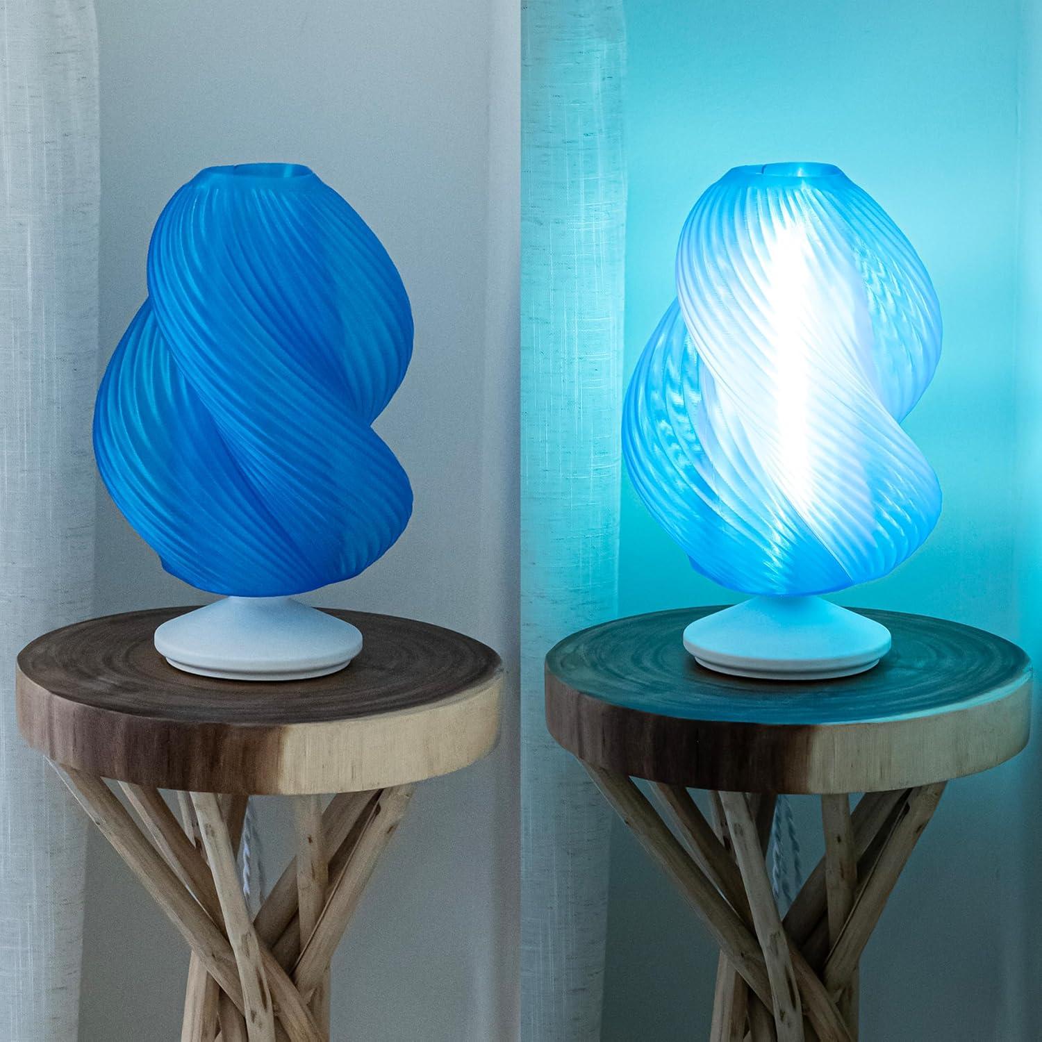 JONATHAN Y USA1009A Gema 13.5″ Mid-Century Coastal Plant-Based PLA 3D Printed Dimmable LED Table Lamp, Clear Red/Black, for Living Room, Dining Room, Bedroom(Clear Blue/White)