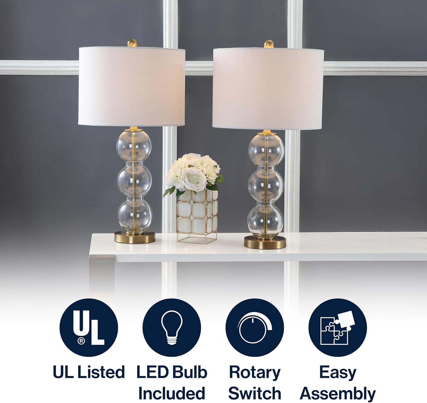 JONATHAN Y JYL1021A February 21″ Glass/Metal LED Table Lamp Contemporary Bedside Desk Nightstand for Bedroom Living Room Office College Bookcase LED Bulb Included, White/Brass Gold(Clear/Chrome)