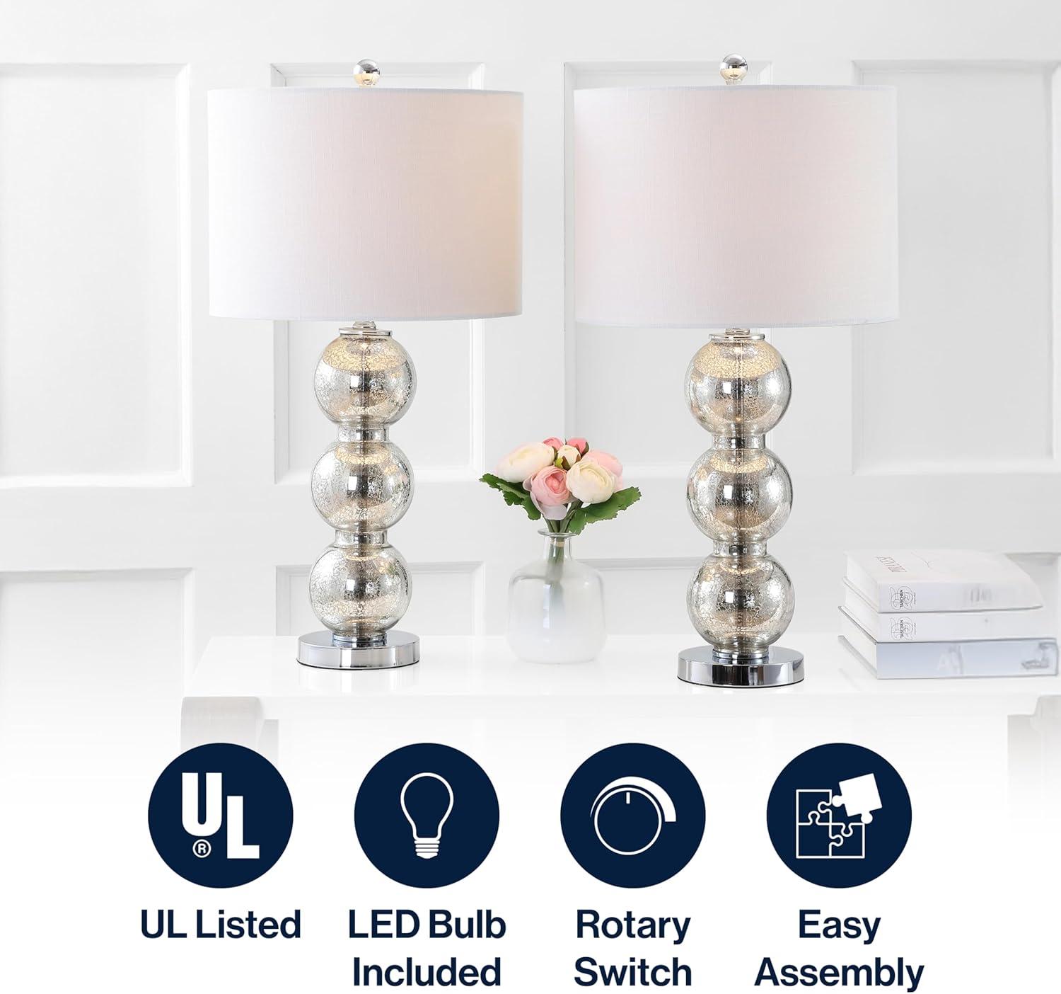 JONATHAN Y JYL1029B Colette 20″ Mini Glass LED Table Lamp, Transitional, Glam, Global, Modern, Elegant, Office, Living Room, Family Room, Dining Room, Bedroom, Hallway, Foyer, Silver(Silver)