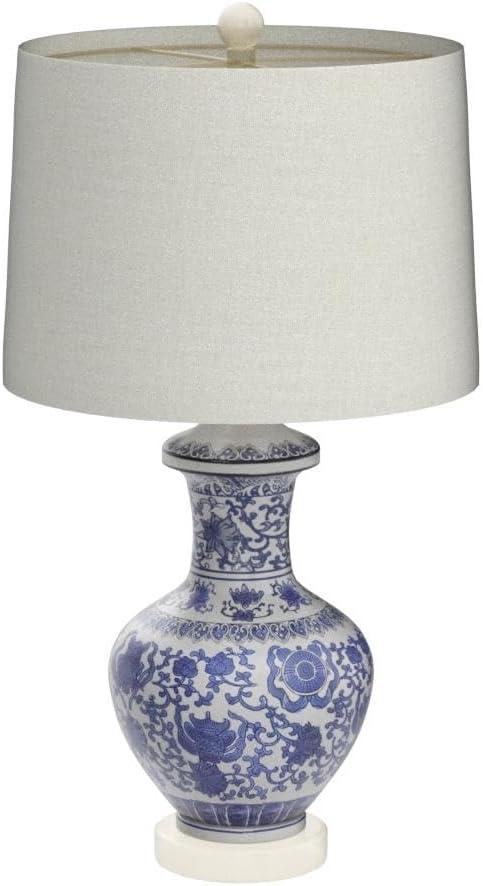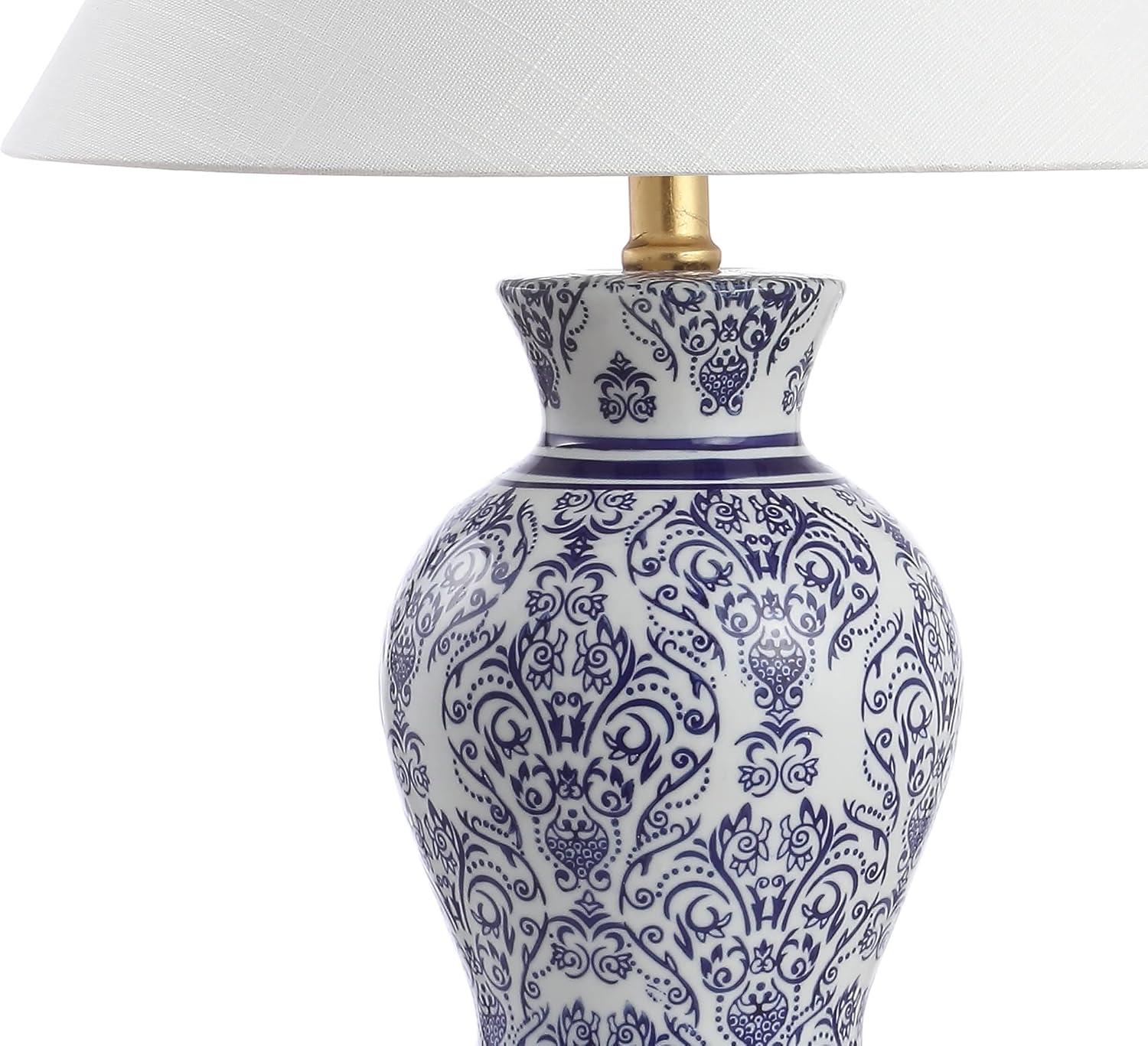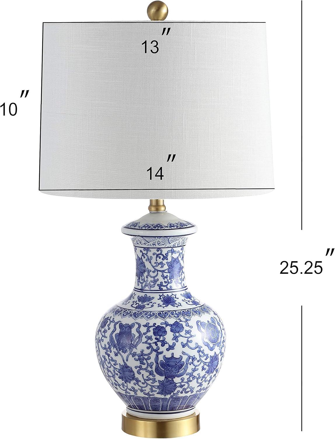 JONATHAN Y USA1003B 3D Printed Dimmable LED Table Lamp Asian Lantern 15″ Vintage Traditional Plant-Based PLA for Living Room, Dorm, Home, Office (LED Bulb Included), White/Blue(White/Blue)