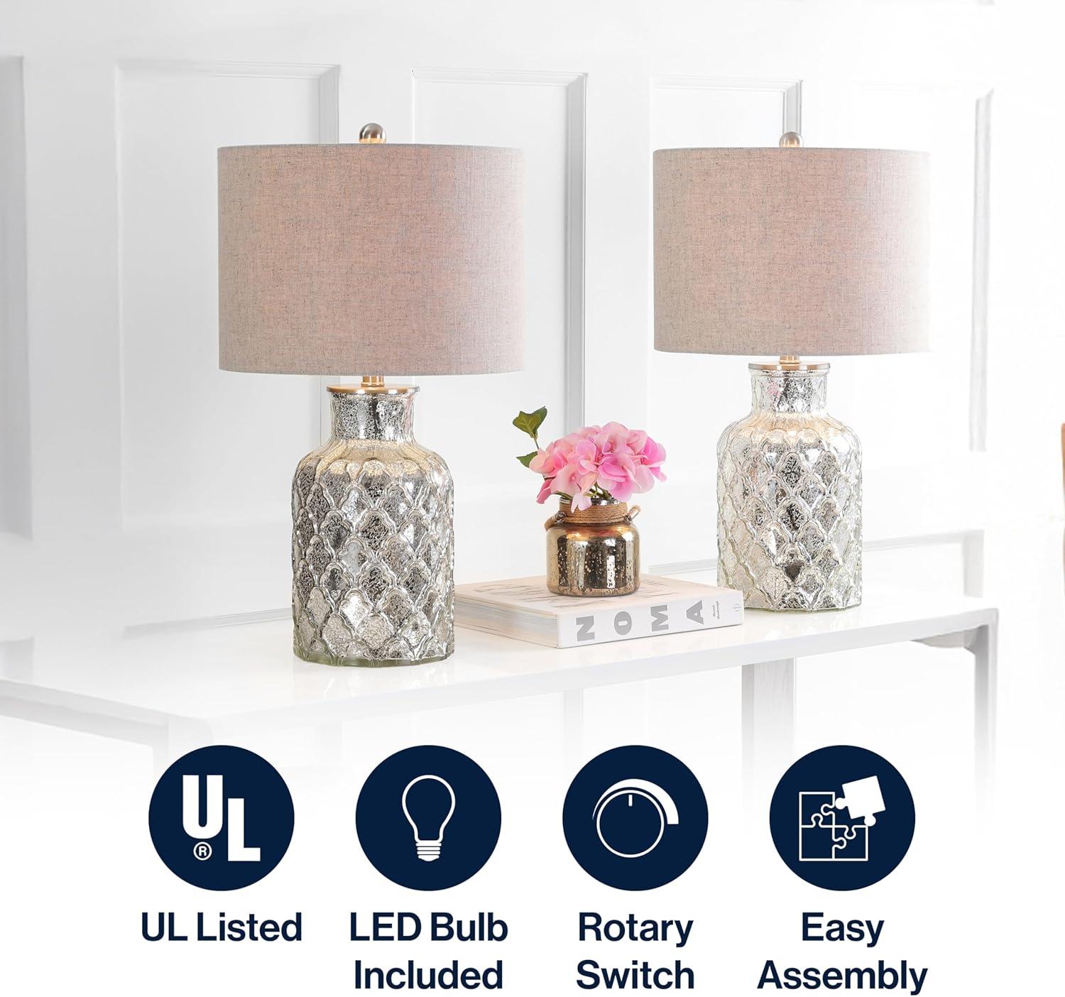 JONATHAN Y JYL1028A Anya 20.5″ Mini Glass LED Table Lamp, Transitional, Glam, Midcentury, Modern, Elegant, Office, Living Room, Family Room, Dining Room, Bedroom, Hallway, Foyer, Gray(Mercury Silver)