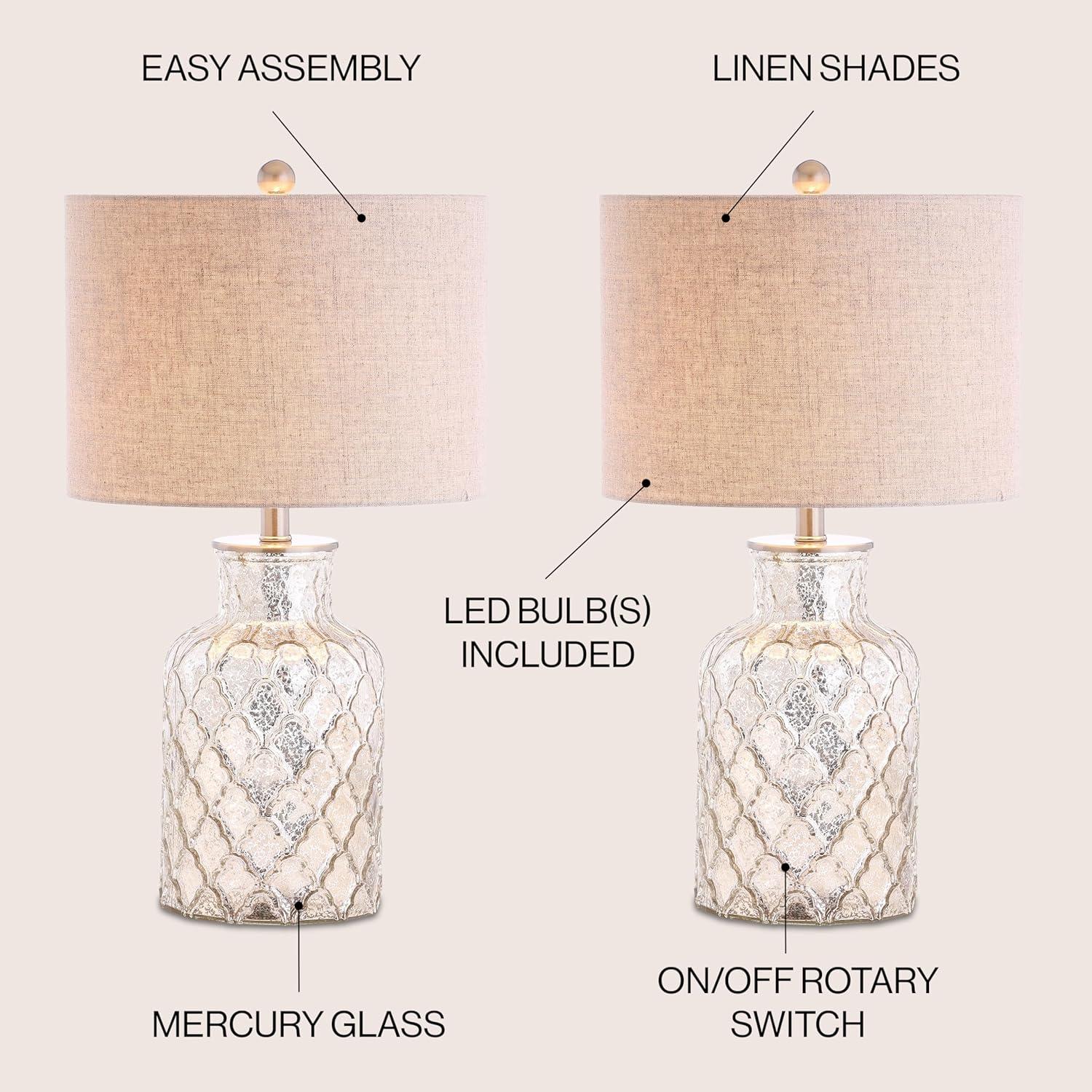 JONATHAN Y JYL1028C-SET2 Anya 20.5″ Mini Glass Lamp(Set of 2) Transitional,Glam,Midcentury for Bedroom, Living Room, Office, College Dorm, Coffee Table, Bookcase, Silver, 2 Piece(Mercury Silver)