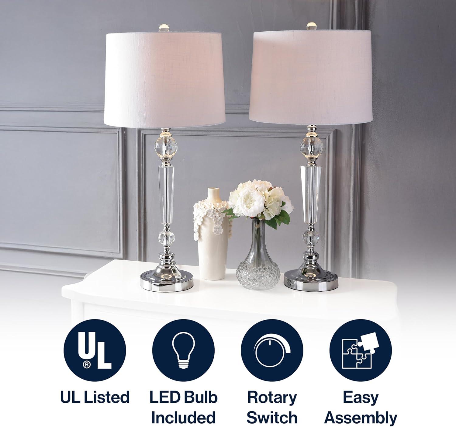 JONATHAN Y JYL1029B Colette 20″ Mini Glass LED Table Lamp, Transitional, Glam, Global, Modern, Elegant, Office, Living Room, Family Room, Dining Room, Bedroom, Hallway, Foyer, Silver(Clear)