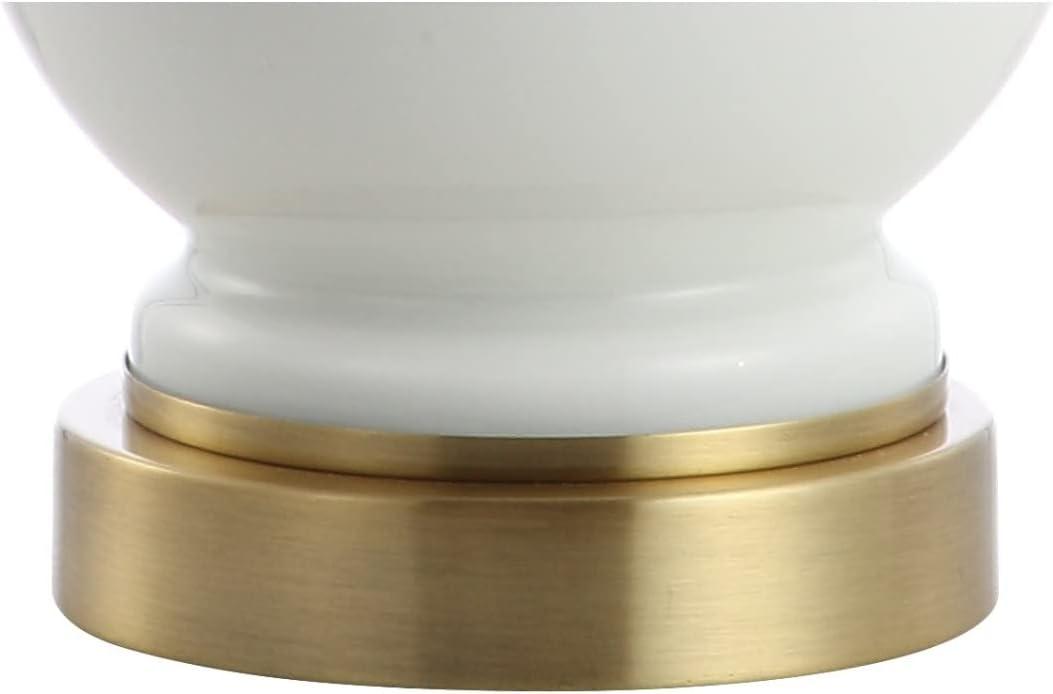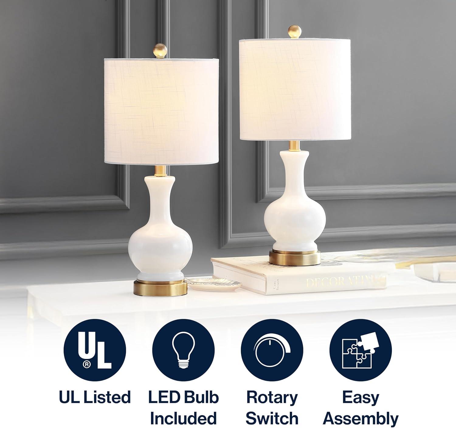 JONATHAN Y JYL1030A Parker 21.5″ Ceramic Mini LED Table Lamp, Modern, Contemporary, Elegant, Office, Living Room, Family Room, Dining Room, Bedroom, Hallway, Foyer, Brass/White