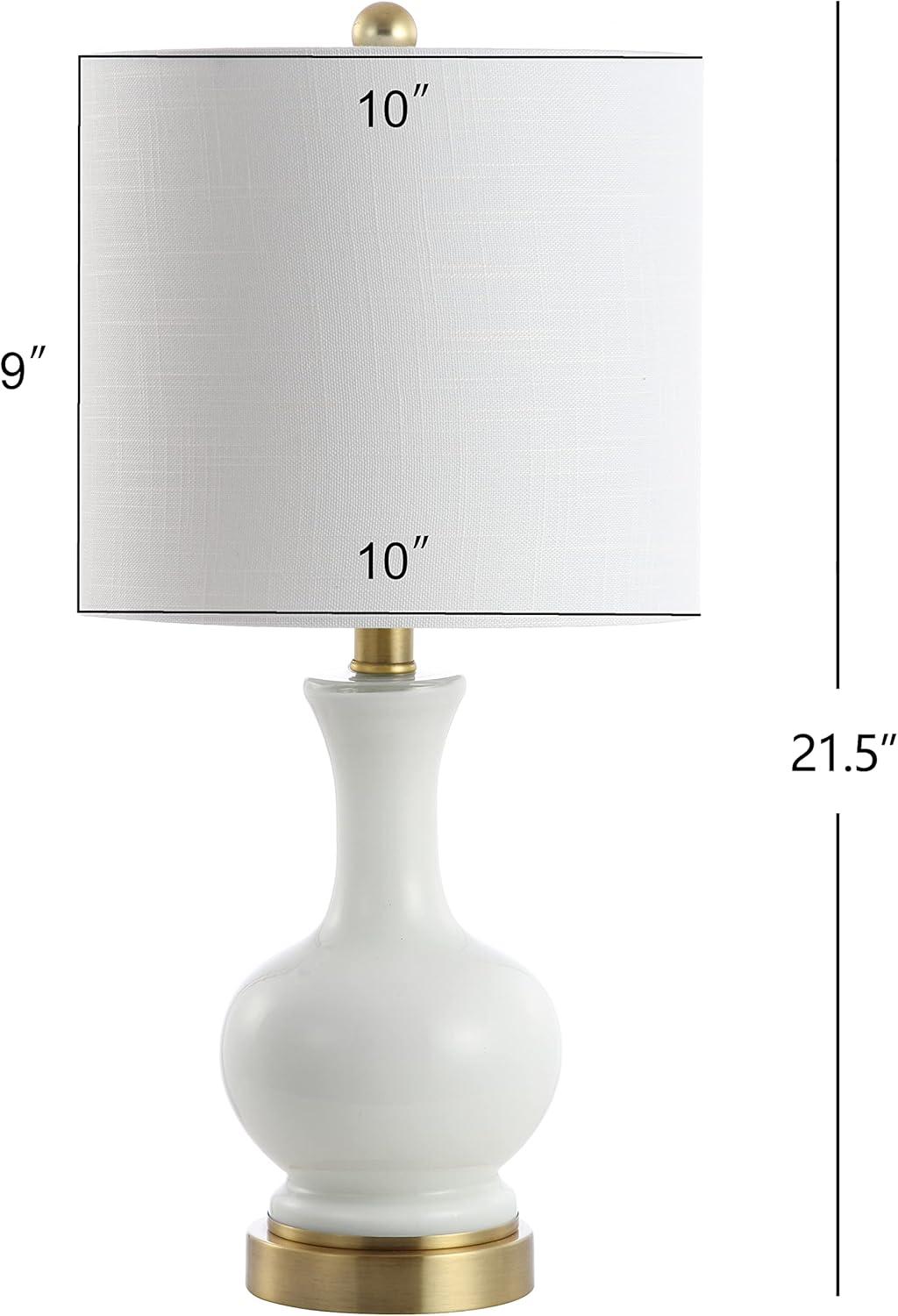 JONATHAN Y JYL1021A February 21″ Glass/Metal LED Table Lamp Contemporary Bedside Desk Nightstand for Bedroom Living Room Office College Bookcase LED Bulb Included, White/Brass Gold(White/Brass Gold)