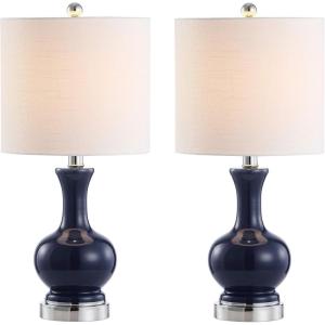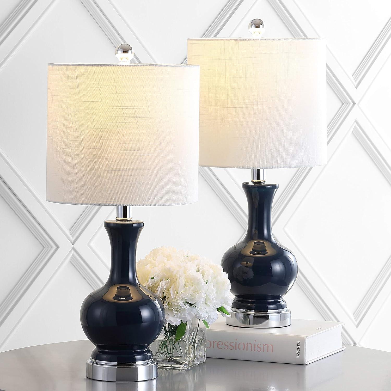 JONATHAN Y JYL1028C-SET2 Anya 20.5″ Mini Glass Lamp(Set of 2) Transitional,Glam,Midcentury for Bedroom, Living Room, Office, College Dorm, Coffee Table, Bookcase, Silver, 2 Piece(Navy)